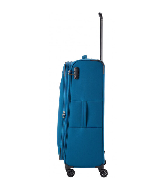 Travelite CHIOS [синя] на 90-97 літрів – велика текстильна валіза з функцією розширення та вбудованим замком TSA. Створена для тривалих та далеких подорожей, поїздок всією сім'єю, коли потрібно взяти з собою велику кількість речей, а функція розширення потурбується, щоб усе бажане помістилося.Німецькі валізи Chios виготовлено з сучасного текстильного матеріалу, який чудово адаптується під будь-які виклики в дорозі. Він неймовірно міцний, водо- та брудовідштовхувальний, має естетичний зовнішній вигляд. Захищені кути продовжать термін служби вашої нової валізи Travelite CHIOS. 4 якісні колеса з двома роликами легко обертаються на 360 градусів, щоб транспортування було максимально комфортним. Ідеальна колекція м'якого багажу для сім'ї. Отже, збирайте дітей, збирайте всі свої улюблені речі – і розпочинайте відпустку.Інформація про валізу Travelite CHIOS Petrol [080049 22]✔ М'який тип корпуса – поліестер 600D PES (водовідштовхувальний).✔ Великий розмір: висота 78 – ширина 46 – товщина 30-34 см.✔ Вставка на блискавці для збільшення об’єму з 90 до 97 літрів✔ Легка вага: 3,4 кг.✔ Якісна фурнітура – блискавки.✔ Вбудований у корпус кодовий замок TSA LOCK (заводський код 000).✔ 4 колеса з подвійними роликами – стійкість та легке розвертання валізи на одному місці.✔ Телескопічна ручка регулюється під ваш зріст.✔ Верхня та бічна посилені ручки для перенесення.• Глибока камера із горизонтальними ременями-фіксаторами.• Перегородка на блискавці у меншому відділенні.• Передня потайна кишеня на блискавці.Оригінальні німецькі валізи TRAVELITE/Тревелайт - офіційна гарантія якості та швидка доставка від А ttribute.ua.