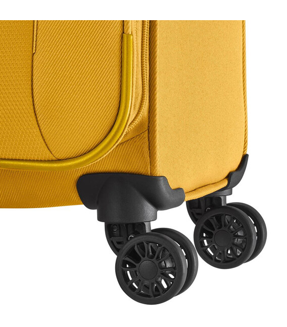 Travelite CROATIA [жовта] на 35 літрів – маленька текстильна валіза з великою передньою кишенею та вбудованим кодовим замком. Розмір S та м'який тип корпуса робить валізу комфортним варіантом для короткострокових поїздок. А наявність багажної манжети на спинці стане чудовим доповненням, якщо ви вирішите вирушити в поїздку більше, ніж з однією валізою. А завдяки яскравому дизайну подорож буде ще приємнішою.Колекція Croatia від німецького бренду Travelite – це лінійка текстильних валіз у практичному м'якому корпусі, який дозволяє запакувати ще декілька речей, коли твердий багаж уже тріщав би по швах. Зовнішня кишеня є ще однією перевагою м'якого багажу. Вона незамінна для розміщення речей першої необхідності: від квитків, документів чи серветок до книги чи легкої куртки.Інформація про валізу Travelite CROATIA Curry [080347 89]✔ Водонепроникний текстильний корпус: поліестер 600D.✔ Маленький розмір: висота 55 – ширина 39 – товщина 20 см (підходить для ручної поклажі).✔ Легка вага: 2,4 кг.✔ Витривала багажна блискавка з двома бігунками.✔ Вбудований у корпус кодовий замок.✔ 4 колеса з подвійними роликами – стійкість та легке розвертання валізи на одному місці.✔ Телескопічна ручка регулюється по висоті.✔ Верхня посилена ручка для перенесення.✔ Нижня ручка для зручного вкладання валізи у багажне відділення.✔ Широка багажна манжета на спинці для фіксації на більшій валізі (у розмірі S).• Глибока камера з фіксуючими ременями.• Відділення на блискавці під кришкою валізи.• Додаткові кишені на перегородці.• Велика передня кишеня на блискавці.Оригінальні німецькі валізи TRAVELITE/Тревелайт - офіційна гарантія якості та швидка доставка від А ttribute.ua.