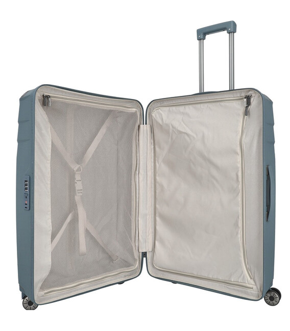 Travelite ELVAA [Bluegrey] на 102 літри – величезна удароміцна валіза з TSA замком. Елегантний просторий дизайн для великої кількості речей, тому з такою валізою можете сміливо планувати далекі та тривалі поїздки.ELVAA – серія якісних пластикових валіз з поліпропілену, який крім удароміцності та легкої ваги, може похвалитися ще й чудовою гнучкістю. Завдяки останній валізу можна перевозити навіть напівпорожньою, не побоюючись, що корпус трісне під вагою іншого багажу. Естетично виглядає текстурна поверхня, яка перешкоджає появі дрібних подряпин, а захисні накладки на кути продовжать термін служби валізи Elvaa. Пластикові валізи здобули популярність не лише завдяки стильному дизайну, але також і надійному захисту речей від ударів, дощу, снігу. Чотири подвійні колеса, що обертаються на 360 градусів, забезпечують приємний комфорт під час транспортування.TRAVELITE – німецький багажний бренд, який з 1949 року виготовляє якісні валізи, дорожні сумки, рюкзаки та іншу дорожню атрибутику.Інформація про валізу Travelite ELVAA (076349 26)✔ Великий L розмір: 77 х 52 x 31 см.✔ Легка вага: 3,9 кг✔ Дизайн: Bluegrey (сіро-блакитний відтінок).✔ Матеріал корпуса: поліпропілен, який не містить ПВХ.✔ Якісна підкладка із переробленого матеріалу.✔ Витривала багажна блискавка з прогумованим кантом.✔ Кодовий замок TSA.✔ 4 подвійні колеса з гладким тихим протектором.✔ Телескопічна ручка з кількома точками фіксації на різній висоті.✔ Зверху та збоку – міцні ручки для підняття та перенесення в руках.• Простора камера з рівномірним розподілом на 2 секції.• Пакувальні еластичні ремені у кожній секції.• Потайна кишеня для цінних речей.Якісні німецькі валізи Travelite з офіційною гарантією якості в інтернет-магазині А ttribute.