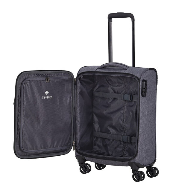 Travelite ADRIA [сіра] на 34 літри – ручна поклажа з передньою кишенею та вбудованим кодовим замком. Маленький розмір, м'який тип корпуса та 4 колеса робить валізу комфортним варіантом для короткострокових поїздок. А наявність багажної манжети на спинці стане чудовим доповненням, якщо ви вирішите вирушити в поїздку більше, ніж з однією валізою.Колекція Adria готова вражати своїм строкатим та ненудним виглядом. Високоміцний поліестеровий корпус з поліуретановим покриттям, стійкий до зношування та стирання. Не поглинає вологу і не сприйнятливий до ультрафіолетового випромінювання. Вплетення міцнішої нитки за технологією Rip Stop збільшує опір матеріалу на розрив. Меланжеве яскраве забарвлення, стильний перфорований захист кутів, легка вага та бездоганна якість - ви готові вирушити в наступну пригоду!Інформація про валізу Travelite ADRIA Anthracite [080247 04]✔ Корпус – поліестер 600D PES.✔ Маленька валіза: висота 55 – ширина 39 – товщина 20 см (підходить для ручної поклажі).✔ Легка вага: 2,4 кг.✔ Якісна фурнітура – блискавки.✔ Вбудований у корпус кодовий замок (заводський код 000).✔ 4 колеса з подвійними роликами – стійкість та легке розвертання валізи на одному місці.✔ Телескопічна ручка регулюється під ваш зріст.✔ Верхня посилена ручка для перенесення.✔ Нижня ручка для зручного вкладання валізи у багажне відділення.✔ Багажна манжета на спинці для фіксації на більшій валізі (у розмірі S).• Глибока камера з горизонтальними ременями-фіксаторами.• Перегородка на блискавці, яка відокремлює відділення меншого розміру.• Переднє зовнішнє відділення на блискавці.Оригінальні німецькі валізи TRAVELITE/Тревелайт - офіційна гарантія якості та швидка доставка від А ttribute.ua.