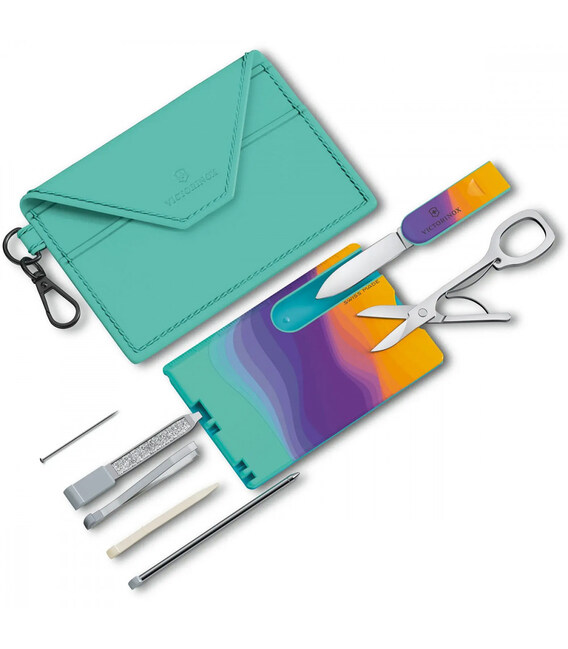 Victorinox SWISS CARD Classic – Sydney Style – швейцарська картка, вона ж картка-мультитул, на 10 функцій із колекції Live to Explore – «Живи, щоб досліджувати». Елегантно оптимізуйте набір речей разом із цією багатофункціональною карткою та звільніть місце у сумочці. Swiss Card Classic містить 10 функцій, покликаних полегшити життя: від ножиць та леза до кулькової ручки. А додайте до цього ще й стильний футляр для банківських карток чи візитівок, щоб здобути репутацію модниці.Інформація про SWISS CARD Classic - Sydney Style [0.7100.E222]✔ Яскрава колекція 2023 року – Live to Explore.✔ Корпус-органайзер у дизайні Sydney Style.✔ 10 функцій.✔ У наборі з м'ятно-зеленим картхолдером-чохлом на карабіні.✔ Розмір картки (довжина х ширина х товщина), мм: 82 х 55 х 4✔ Вага: 26 г✔ Подарункова коробка.1. невелике лезо2. ножиці3. пилочка для нігтів4. - плоска викрутка 2,5 мм5. кулькова ручка6. шпилька7. зубочистка8. пінцет9. лінійка (у дюймах)10. лінійка (см)