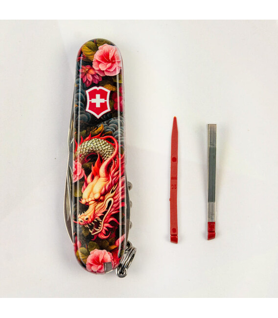 Ексклюзивний швейцарський кишеньковий ніж Victorinox SPARTAN 91 мм із захопливим дизайном накладок. Згідно зі східним календарем, господарем 2024 року буде Зелений Дерев'яний Дракон. Дракон символізує силу, честь, шляхетність. Щиро віримо, що наступний рік допоможе нам сповна продемонструвати ці свої якості, а складаний ніж Victorinox з Драконом стане оригінальним нагадуванням про це. Ідеальний подарунок на Новий рік, колекціонерам та рідним, знайомим «драконам», а також усім любителям світу фентезі.SPARTAN – багатофункціональний (12 функцій), щоб використовувати його у побуті, на роботі та відпочинку; у місті та на природі. І при цьому досить компактний, щоб носити його завжди і скрізь із собою. Кожен із інструментів порадує бездоганною роботою та довговічністю.Інформація про складаний ніж Victorinox SPARTAN [1.3603.Z3300p]:✔ Святкова лінійка Spartan Zodiac 2024 із Драконами.✔ Ексклюзивні пластикові накладки із зображенням [Китайський зелений дракон].✔ Тип нанесення малюнка: повне цифрове повноколірне задруковування накладок.✔ Покриття глянцевим лаком для захисту та естетичного вигляду.✔ Заміна пінцета та зубочистки на червоні для гармонійного поєднання з дизайном.✔ Кількість функцій: 12.✔ Середній розмір складаного ножа: довжина 91 мм – ширина 26 мм – товщина 14 мм✔ Вага ножа: 59 г✔ Комплектація: ніж Spartan, коробка, гарантія-сертифікат.✔ Ніж виготовлено у Швейцарії.✔ Victorinox AG гарантує, що всі ножі із першокласної неіржавної сталі.1. велике гладке лезо (довжина 6 см)2. лезо меншого розміру (довжина 3,5 см)3-5. відкривачка для пляшок з плоскою викруткою 6 мм на кінці та пазом для ізоляції6-7. консервний ніж із плоскою викруткою 3 мм на кінці8. штопор9. шило з функцією кернера або дірокола10. пінцет у передній накладці11. зубочистка у задній накладці12. сталеве кільце