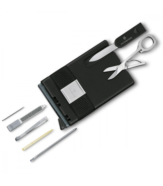 Victorinox SMART CARD Wallet - Sharp Gray – швейцарська картка-гаманець на 10 функцій, серед яких картхолдер та ремінець-фіксатор для банкнот. Комбінація смарт-картки з RFID захистом пропонує не тільки елегантний гаманець, але й корисні інструменти для повсякденного життя в компактному форматі. Пропонує простоту використання, що завжди під рукою. Вміщує до шести карток та має унікальний запатентований механізм для швидкого та легкого вставляння та діставання карток під час оплати.Інформація про SMART CARD Wallet - Sharp Gray [0.7250.36]✔ Інноваційна серія 2023 року.✔ Чорний пластиковий корпус-органайзер для інструментів.✔ 10 функцій, серед яких картхолдер та ремінець-фіксатор для банкнот.✔ Сірий картхолдер із захистом RFID.✔ Компактний розмір (довжина x ширина x товщина), мм: 104 х 65 х 17✔ Вага: 81 г✔ Елегантна подарункова коробка.1. маленьке лезо2. ножиці3. пилочка для нігтів4. - плоска викрутка 2,5 мм5. кулькова ручка6. шпилька7. зубочистка8. пінцет9. еластичний ремінець для грошей10. картхолдер із місцем для 4-6 карток