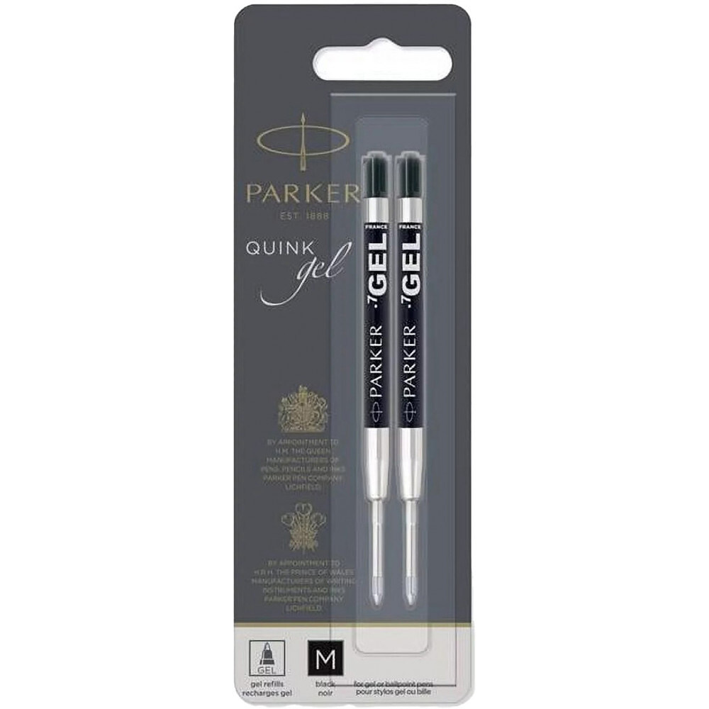 Гелеві стрижні для використання в кулькових та гелевих ручках Паркер.Лінія письма М – середня (0,7 мм).Гелеве чорнило чорного кольору.Виготовлено у Франції.У блістері 2 шт.