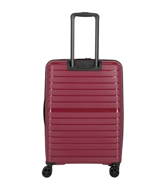 Travelite TRIENT [Bordeaux, L] на 100 літрів – велика яскрава валіза з поліпропілену / з TSA замком. Місткий та раціонально організований багаж для великої кількості речей, тому з такою валізою можете сміливо планувати далекі та тривалі поїздки з усією родиною.Інформація про валізу Travelite TRIENT 076549 70✔ Великий L розмір (В х Ш х Т): 76 х 51 x 29 см.✔ Легка вага: 3,7 кг✔ Дизайн: Bordeaux (бордовий/вишневий колір; матова текстурована поверхня з горизонтальними глянцевими смугами).✔ Гнучкий пластиковий корпус: поліпропілен.✔ Міцна підкладка з поліестеру.✔ Витривала багажна блискавка з двома бігунками.✔ Вбудований у верхню частину корпусу кодовий замок TSA.✔ 4 маневрених колеса з гладким протектором.✔ Висувна чорна ручка з фіксацією на різній висоті.✔ Дві додаткові ручки (верхня та бічна) для підняття та перенесення в руках.• Простора камера з рівномірним поділом на дві секції.• У першій секції – перегородка на блискавці.• У другій – х-подібні ремені-резинки для фіксації речей.TRIENT – колекція довговічних поліпропіленових валіз, які характеризуються міцністю, легкістю та гнучкістю, що дозволяє перевозити валізу заповненою не повністю без страху, що корпус трісне, якщо на нього поставити інший багаж. Стійка до подряпин та потертостей поверхня довго зберігає естетичний зовнішній вигляд. Зверху знаходиться втоплений у корпус TSA замок, який збереже ваші цінні речі, відповідаючи стандартам безпеки. Пластикові валізи завоювали популярність не тільки завдяки стильному дизайну, але й надійному захисту вашого багажу від ударів, дощу, снігу. А 4-колісна валіза - ідеальний попутник в аеропортах та вокзалах, адже котити її можна простими поштовхами поряд з собою без особливих зусиль.Travelite – популярний німецький бренд, який з 1949 року виготовляє якісну та стильну багажну продукцію.