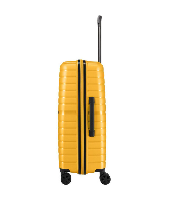Travelite TRIENT [Yellow, L] на 100 літрів – яскрава валіза великого розміру / з поліпропілену / з TSA замком. Місткий та раціонально організований багаж для великої кількості речей, тому з такою валізою можете сміливо планувати далекі та тривалі поїздки з усією родиною.Інформація про валізу Travelite TRIENT 076549 89✔ Великий L розмір (В х Ш х Т): 76 х 51 x 29 см.✔ Легка вага: 3,7 кг✔ Дизайн: Yellow (жовтий; матова текстурована поверхня з горизонтальними глянцевими смугами).✔ Гнучкий пластиковий корпус: поліпропілен.✔ Міцна підкладка з поліестеру.✔ Витривала багажна блискавка з двома бігунками.✔ Вбудований у верхню частину корпусу кодовий замок TSA.✔ 4 маневрених колеса з гладким протектором.✔ Висувна чорна ручка з фіксацією на різній висоті.✔ Дві додаткові ручки (верхня та бічна) для підняття та перенесення в руках.• Простора камера з рівномірним поділом на дві секції.• У першій секції – перегородка на блискавці.• У другій – х-подібні ремені-резинки для фіксації речей.TRIENT – колекція довговічних поліпропіленових валіз, які характеризуються міцністю, легкістю та гнучкістю, що дозволяє перевозити валізу заповненою не повністю без страху, що корпус трісне, якщо на нього поставити інший багаж. Стійка до подряпин та потертостей поверхня довго зберігає естетичний зовнішній вигляд. Зверху знаходиться втоплений у корпус TSA замок, який збереже ваші цінні речі, відповідаючи стандартам безпеки. Пластикові валізи завоювали популярність не тільки завдяки стильному дизайну, але й надійному захисту вашого багажу від ударів, дощу, снігу. А 4-колісна валіза - ідеальний попутник в аеропортах та вокзалах, адже котити її можна простими поштовхами поряд з собою без особливих зусиль.Travelite – популярний німецький бренд, який з 1949 року виготовляє якісну та стильну багажну продукцію.
