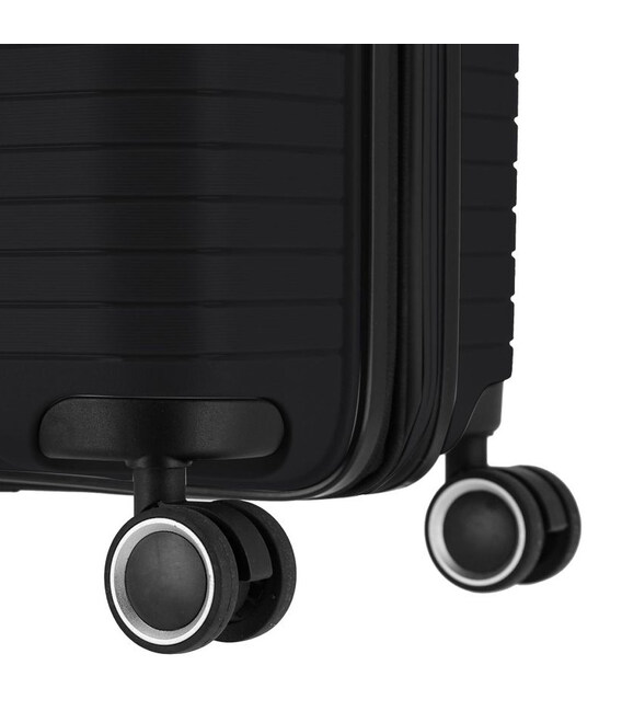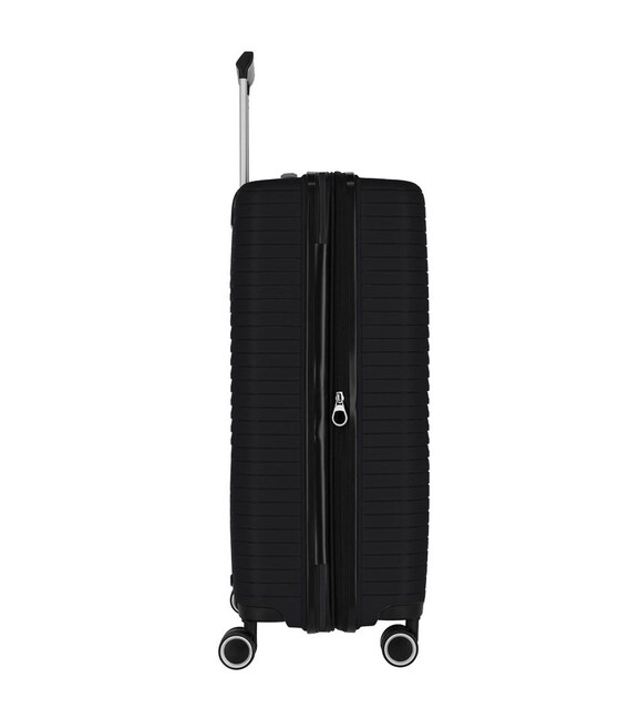 Travelite ORBITA [Black, L] на 103 літри – велика валіза з поліпропілену / з TSA замком. Місткий та раціонально організований багаж для великої кількості речей, тому з такою валізою можете сміливо планувати далекі та тривалі поїздки з усією родиною.Інформація про валізу Travelite 076949 01✔ Великий L розмір: 77 х 51 x 30 см.✔ Вага: 3,5 кг✔ Дизайн: Black (чорний; дрібнофактурна поверхня захищає від подряпин і розводів).✔ Удароміцний пластиковий корпус: поліпропілен.✔ Витривала багажна блискавка з двома бігунками.✔ Вбудований у корпус кодовий замок TSA.✔ 4 подвійних маневрених колеса з гладким протектором.✔ Висувна чорна ручка з фіксацією на різній висоті.✔ Верхня ручка для підняття та перенесення в руках.• Простора камера з двома секціями з перегородками на блискавці.• Кишені на перегородці для дрібного багажу.ORBITA – колекція німецьких поліпропіленових валіз з TSA замком у всіх розмірах. Пластикові валізи здобули популярність не лише завдяки стильному дизайну, але також і надійному захисту вашого багажу від ударів, дощу, снігу. А 4-колісна валіза - ідеальний попутник в аеропортах та вокзалах, адже котити її можна простими поштовхами поряд з собою без особливих зусиль.Travelite - популярний німецький бренд, який з 1949 року створює якісну та стильну багажну продукцію.