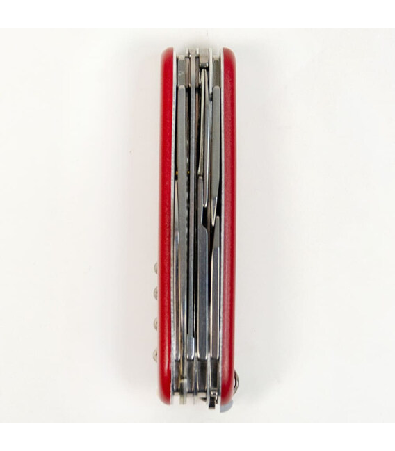Швейцарський багатофункціональний ніж HUNTSMAN MAT на 15 функцій у червоному матовому дизайні. Ми вирішили порадувати вас створенням ексклюзивної лінійки улюблених кишенькових ножів, накладки яких покрили стійким до стирання матовим лаком. Залишаючись приємно гладкими на дотик, накладки не тільки виглядають неймовірно круто, тепер на них не видно відбитків пальців або розводів і ніж довше виглядає як новенький.Victorinox Huntsman – представник колекції середніх кишенькових ножів 91 мм, а наявність одразу 15 функцій чудово адаптує модель для різних видів активного проведення часу. Добротна пилка по дереву легко розпиляє невелику колоду. Два дуже гострі леза завдовжки 3,5 і 6 см для робіт, які вимагають різної маневреності. Завдяки якісному пружинному механізму ножицями зручно не лише різати папір чи нитки, а й обрізати нігті. Відкривачка та консервний ніж комбіновані з плоскими викрутками різного розміру на кінці. З іншого боку розташовані штопор, багатоцільовий гачок, а також шило з вушком для шиття (воно ж дірокол і кернер). Звично довершують функціонал пінцет, пластикова зубочистка та сталеве кільце для кріплення до ключів або темляка.Інформація про ніж HUNTSMAN MAT [1.3713.M0007p]:✔ Колекція складаних ножів із матовими накладками HUNTSMAN MAT.✔ Оригінальні червоні накладки покриті матовим лаком.✔ Інструменти: високоякісна неіржавна сталь.✔ Кількість функцій: 15.✔ Можливість доукомплектувати ніж шпилькою та маленькою викруткою.✔ Ніж та накладки виготовлено у Швейцарії.✔ Матове лакове покриття виконано професіоналами в Україні.✔ Комплектація: ніж Huntsman, сертифікат та коробочка.✔ Victorinox AG гарантує, що всі ножі із першокласної неіржавної сталі.✔ Довічна гарантія від будь-яких дефектів матеріалів та виробництва.✔ 100% оригінал Victorinox/Вікторінокс (Швейцарія).