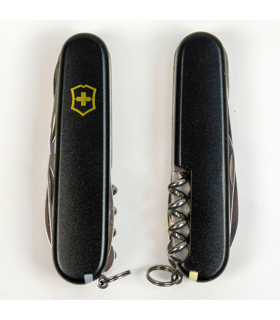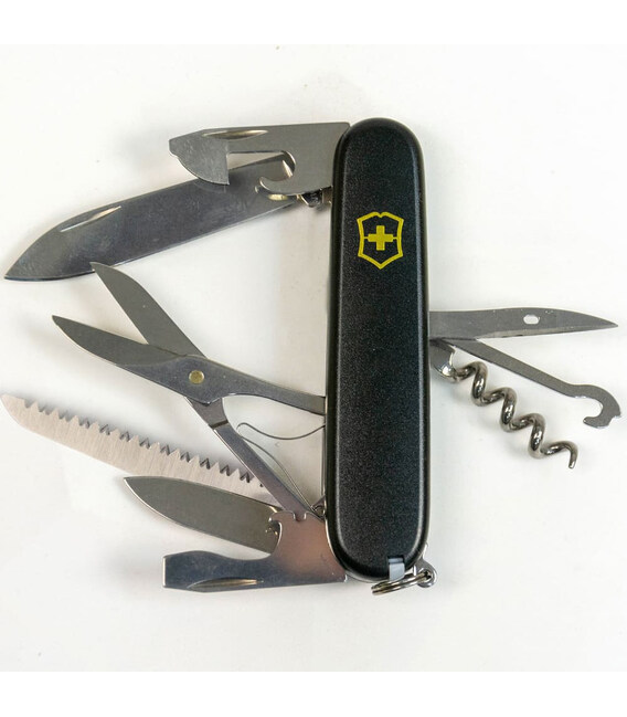 Складаний ніж Victorinox HUNTSMAN MAT 91мм / 15 функцій / чорні матові накладки / штопор / ножиці / пилка / гачок / жовтий логотип 1.3713.3.M0008p (Швейцарія) Гарантія: довічна