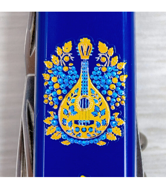 Швейцарський складаний ніж SPARTAN UKRAINE [Українські мотиви; сині накладки]. Спеціальна пропозиція для українських шанувальників та колекціонерів бренду Victorinox. Ексклюзивний дизайн, центральним елементом якого виступив український народний інструмент - кобза.Чудовий набір інструментів у кишеньковому форматі, щоб у всеозброєнні зустріти новий день. Базовий для середніх складаних ножів інструментарій з компактним дворядним розташуванням інструментів, який завжди знайде призначення у побуті та дозвіллі; у місті та на природі.Складаний ніж Victorinox 1.3603.2.T1370u✔ Спецвипуск VICTORINOX UKRAINE (початок випуску 2024 рік, доступний тільки в Україні).✔ Ексклюзивний дизайн [Українські мотиви] у комплектації ножа SPARTAN.✔ Сині глянцеві накладки з удароміцного пластику (целідор).✔ Тип нанесення малюнка: стійкий до стирання УФ друк на лицьовій накладці.✔ Кількість функцій: 12.✔ Середній розмір складаного ножа: довжина 91 мм – ширина 26 мм – товщина 14 мм✔ Вага ножа: 59 г✔ Ніж виготовлено у Швейцарії.✔ Патріотичний дизайн виконано на високоякісному професійному обладнанні в Україні.✔ Victorinox AG гарантує, що все ножі з першокласної неіржавної сталі.✔ Оригінальна картонна коробочка Victorinox з сертифікатом-гарантією.Функції:1. лезо завдовжки 6 см2. лезо завдовжки 3,5 см3-5. відкривачка для пляшок з плоскою викруткою 6 мм на кінці та пазом для ізоляції6-7. консервний ніж з плоскою викруткою 3 мм на кінці8. штопор9. шило з функцією кернера або дірокола10. пінцет у передній накладці11. пластикова зубочистка в задній накладці12. сталеве кільце Всі нові дизайни було узгоджено з компанією Victorinox і відповідають новій політиці Victorinox щодо використання державної та національної символіки.