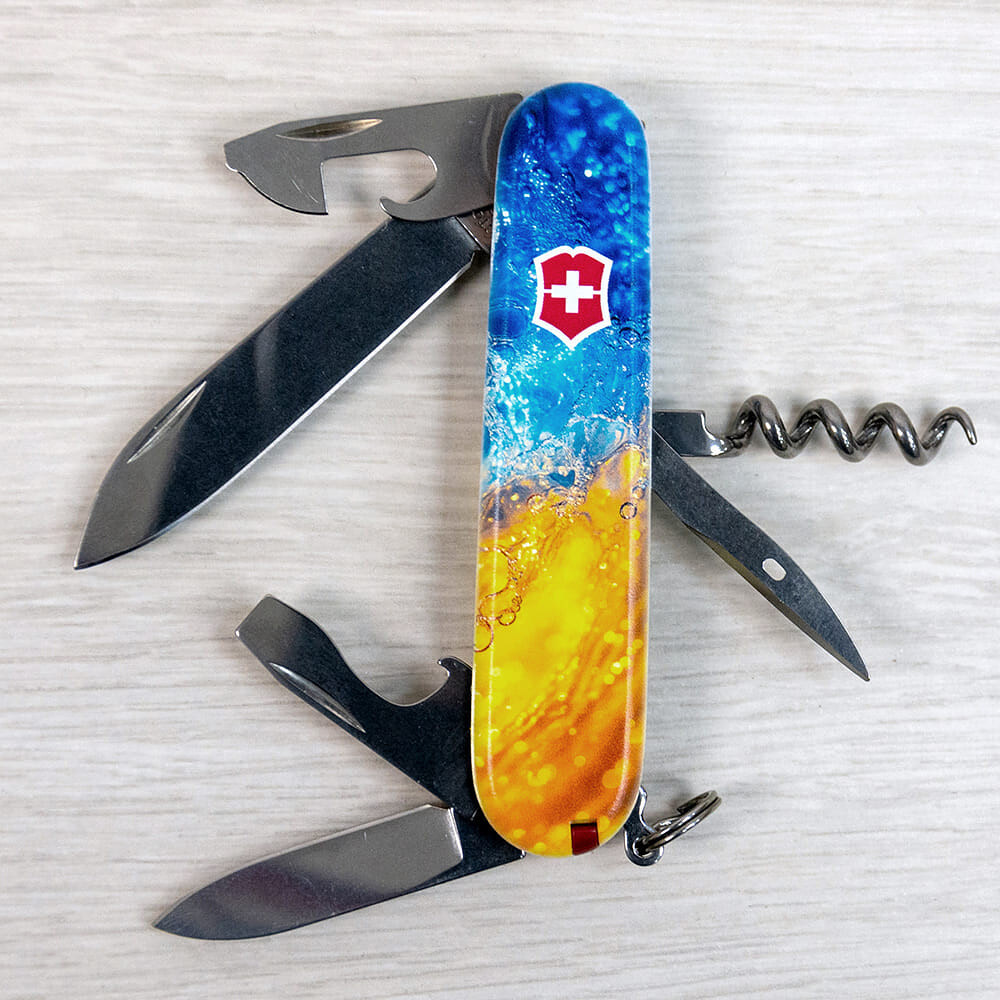 Ексклюзивний складаний ніж Victorinox SPARTAN UKRAINE 91мм/13 функцій/штопор / Жовто-сині бризки (Швейцарія) Гарантія: довічна