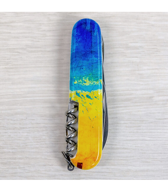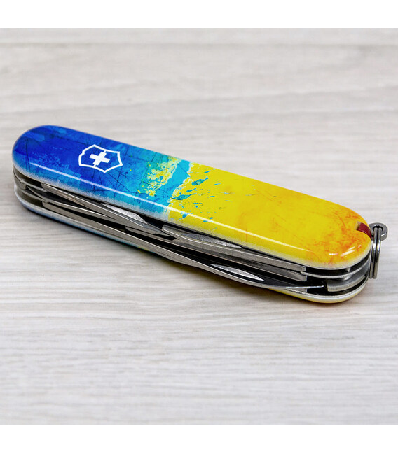 Ексклюзивний складаний ніж Victorinox CLIMBER UKRAINE 91мм/15 функцій/штопор/ножиці/гачок /Жовто-синій малюнок (Швейцарія) Гарантія: довічна