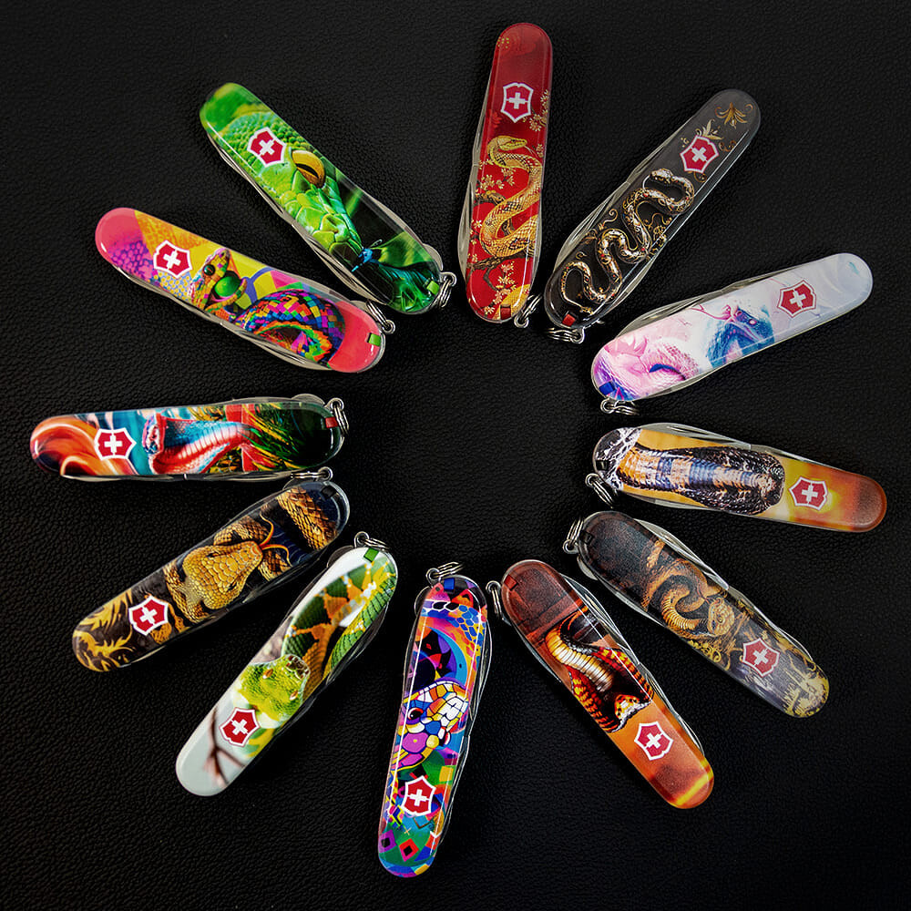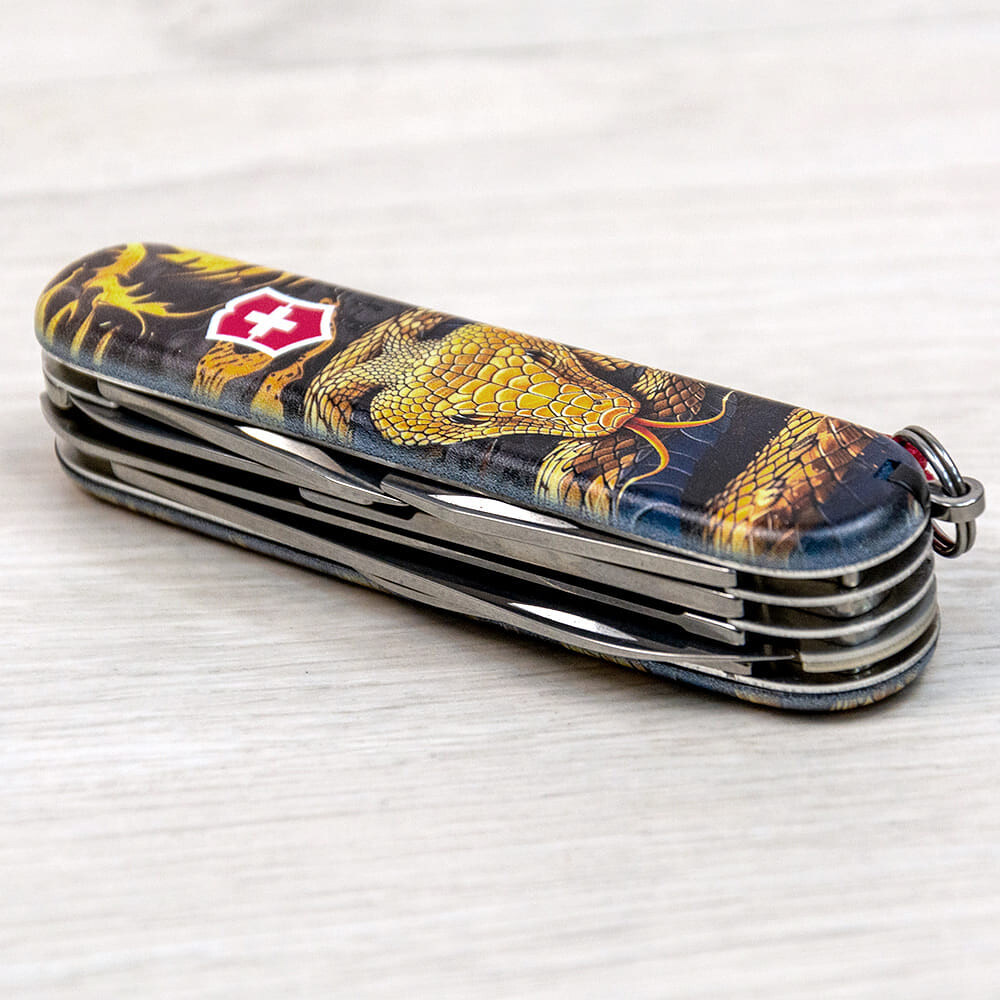 Ексклюзивний складаний ніж Victorinox HUNTSMAN ZODIAC 91мм/15 функцій/штопор/ножиці/пилка/гачок /Дерев'яна змія (Швейцарія) Гарантія: довічна