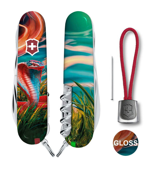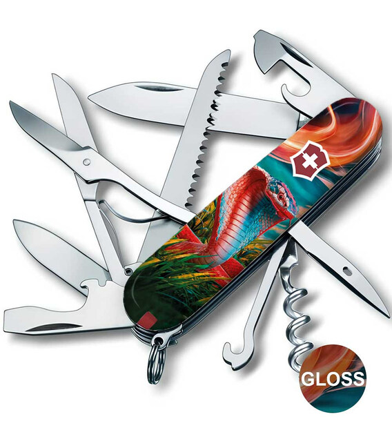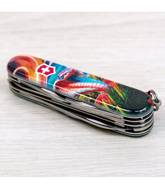 Ексклюзивний складаний ніж Victorinox HUNTSMAN ZODIAC 91мм/15 функцій/штопор/ножиці/пилка/гачок /Барвиста кобра (Швейцарія) Гарантія: довічна