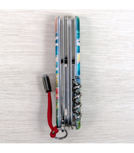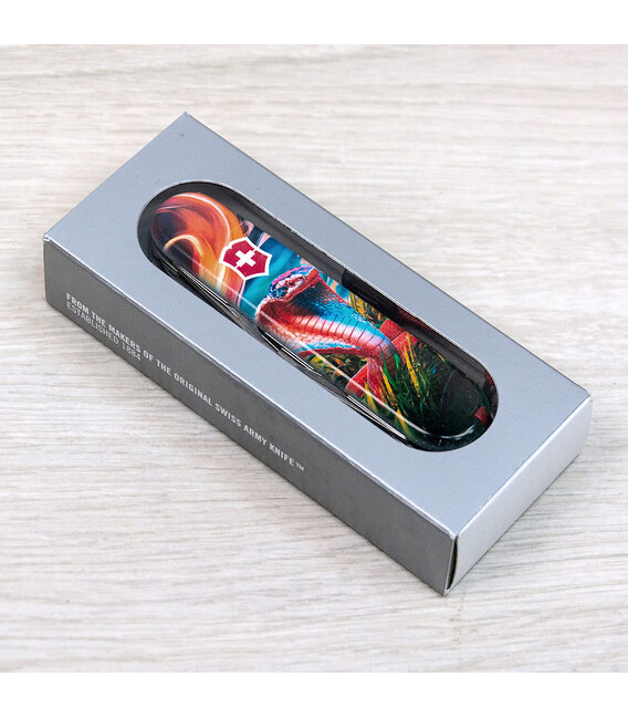 Кишеньковий ніж HUNTSMAN ZODIAC 2025 [Барвиста кобра], присвячений року Змії. 15 функцій, які зазвичай має модель Huntsman 91 мм, у святковому випуску доповнені шпилькою і кольоровим темлячком. Легендарна якість швейцарських армійських ножів Victorinox у поєднанні з професійно виконаним друком на накладках. Цей екземпляр стане не лише корисним багатозадачником для адептів активного відпочинку та туризму, а й унікальним подарунком чи предметом колекціонування.Символом 2025 року буде Змія, яка є символом мудрості та спокою, уособлює гнучкість, креативність та духовний розвиток. Має природну здатність адаптуватися до змін і знаходити баланс, що важливо у всіх сферах життя.Інформація про складаний ніж Victorinox 1.3713.3.Z4290pk✔ Святковий спецвипуск VICTORINOX ZODIAC 2025 зі Змією.✔ Ексклюзивний дизайн [Барвиста кобра] у комплектації ножа HUNTSMAN (доступний лише в Україні).✔ Метод нанесення малюнка: повноколірний цифровий друк на оригінальних пластикових накладках.✔ Друк покрито захисним глянцевим лаком (GLOSS).✔ Персоналізація друком та покриття лаком виконані на високоякісному професійному обладнанні в Україні.✔ Заміна пінцета на червоний та зубочистки на зелену для естетичного поєднання з дизайном накладок.✔ У комплектацію додані шпилька та підвіска-темляк.✔ Кількість функцій: 15+2.✔ Подарункова коробка Victorinox з прозорим віконцем + оригінальний сертифікат-гарантія.✔ Ніж швейцарського виробництва із висококласної неіржавної сталі.1. основне лезо (6 см)2. менше лезо (3,5 см)3-5. відкривачка, комбінована з викруткою 6 мм та пазом для ізоляції.6-7. консервний ніж з викруткою 3 мм8. пилка по дереву9. ножиці з пружинним механізмом10. штопор11. шило з функцією кернера або дірокола12. пінцет у передній накладці13. зубочистка у задній накладці14. сталевий гачок15. кільце для кріплення16. сталева шпилька17. червоний темляк Victorinox Оригінальні швейцарські ножі Victorinox у магазині ексклюзивних аксесуарів зі всього світу chemodanoff.com.ua.Гарантія якості та швидка доставка.