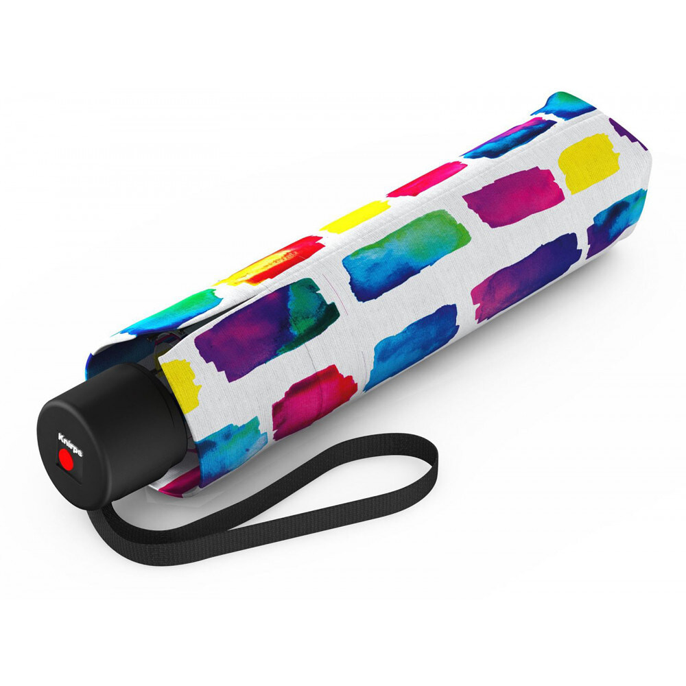 Knirps A.050 Medium Manual (Create Crystal) - механічна складана парасолька з куполом 98 см на 8 спицях. Компактна модель із містким куполом, яку завжди зручно захопити з собою.Серія A.050 представлена якісними механічними моделями за привабливою ціною. Кишенькова парасолька з ручним механізмом відкривання та приємно великим куполом, під яким можуть розміститися навіть дві людини. Завдяки 3-секційному сталевому штоку ця модель складається до зручних 24 см і тому легко поміщається у сумці чи рюкзаку. Парасолька виготовлена у відомій якості Knirps і була протестована в аеродинамічній трубі на швидкості вітру до 80 км/год. Каркас витримано у сучасному чорному кольорі, а купол доступний у різних кольорах.Технічні параметри парасольки Knirps 957051 8543✔️ Механізм: ручний (відкривається і складається за допомогою слайдера).✔️ Купол виготовлено з поліестеру.✔️ Дизайн купола: Create Crystal (білий з різнокольоровим акварельним принтом).✔️ Спиці з алюмінію та склопластику.✔️ Чорний шток у три складання виготовлено з алюмінію та сталі.✔️ Зручна пластикова ручка з ремінцем-петлею.✔️ 8 спиць.✔️ Вітростійкість до 80 км/год, протестована в аеродинамічній трубі.✔️ Діаметр відкритого купола: 98 см.✔️ Довжина складеної парасольки: 24 см.✔️ Вага парасольки: 290 г.✔️ У комплекті з захисним чохлом. Оригінальна німецька парасолька Knirps з розширеною 5-річною гарантією якості від виробника.Висококласна брендова продукція від відомих світових виробників на chemodanoff.com.ua.