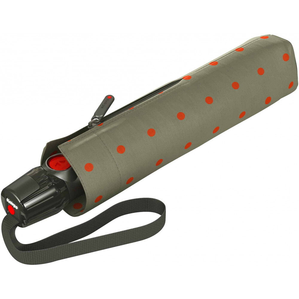 Knirps T.200 Medium Duomatic (бежева у горошок) - вітростійка складана парасолька-автомат з УФ-захистом. Висококласний німецький дизайн, який пройшов аеродинамічний тест на швидкості 150 км/год, а просторий купол діаметром 99 см подбає про надійний захист від будь-якої негоди.Парасольки T.200 - це частина флагманської Т-серії, яка представляє найміцніші парасольки Knirps і протягом багатьох років отримує захоплені відгуки. У каркасі використано сталь, авіаційний алюміній, гнучкий склопластик. Завдяки двом останнім вдається суттєво зменшити вагу парасольки без втрати якості. Гнучка конструкція спиць запобігає поломці навіть при сильному вітрі і дозволяє складати парасольку навіть із положення вивернутого навиворіт купола простим натисканням кнопки. Повнорозмірна ручка з великою червоною кнопкою Duomatic для максимальної зручності використання.Технічні параметри парасольки Knirps 953201 4106✔️ Механізм Duomatic: парасолька відкривається і складається натисканням кнопки.✔️ Купол виготовлено з матеріалу, сертифікованого OEKO-Tex.✔️ Жіночий дизайн купола: Kelly Sand (пісочного кольору в яскравий горошок).✔️ Захист від УФ-променів.✔️ Спиці - поєднання алюмінію та склопластику.✔️ Чорний телескопічний шток у три складання з алюмінію та сталі.✔️ Найбільш вітростійка парасолька Knirps - випробувана в аеродинамічній трубі на швидкості 150 км/год.✔️ Кількість спиць: 8✔️ Діаметр купола: 99 см ✔️ Довжина у складеному вигляді: 28 см✔️ Вага: 320 г✔️ Захисний чохол на блискавці для додаткової зручності.Якісна брендова продукція від відомих світових виробників на chemodanoff.com.ua.Оригінальна німецька парасолька Knirps з офіційною 5-річною гарантією якості.