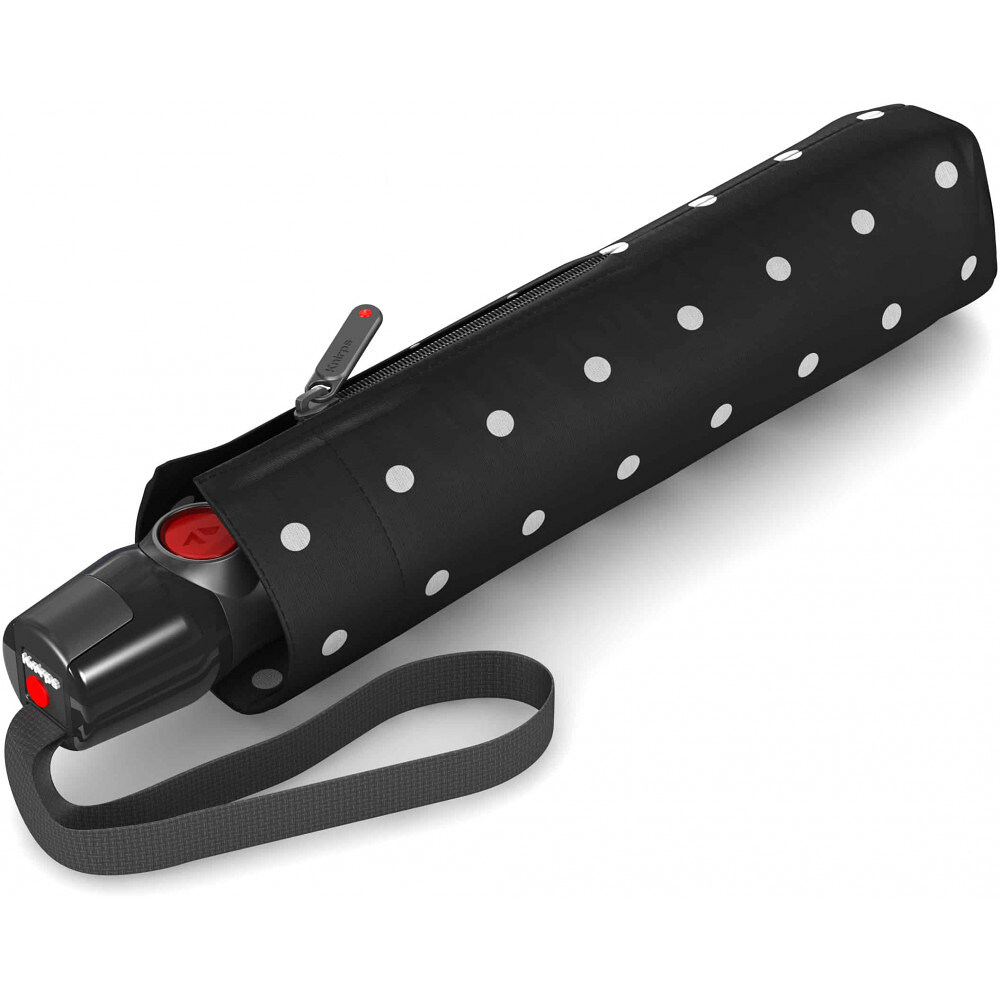 Knirps T.200 Medium Duomatic (чорна у горошок) - вітростійка складана парасолька-автомат з УФ-захистом. Висококласний німецький дизайн, який пройшов аеродинамічний тест на швидкості 150 км/год, а просторий купол діаметром 99 см подбає про надійний захист від будь-якої негоди.Парасольки T.200 - це частина флагманської Т-серії, яка представляє найміцніші парасольки Knirps і протягом багатьох років отримує захоплені відгуки. У каркасі використано сталь, авіаційний алюміній, гнучкий склопластик. Завдяки двом останнім вдається суттєво зменшити вагу парасольки без втрати якості. Гнучка конструкція спиць запобігає поломці навіть при сильному вітрі і дозволяє складати парасольку навіть із положення вивернутого навиворіт купола простим натисканням кнопки. Повнорозмірна ручка з великою червоною кнопкою Duomatic для максимальної зручності використання.Технічні параметри парасольки Knirps 953201 4116✔️ Механізм Duomatic: парасолька відкривається і складається натисканням кнопки.✔️ Купол виготовлено з матеріалу, сертифікованого OEKO-Tex.✔️ Жіночий дизайн купола: Kelly Black (чорний у білий горошок).✔️ Захист від УФ-променів.✔️ Спиці - поєднання алюмінію та склопластику.✔️ Чорний телескопічний шток у три складання з алюмінію та сталі.✔️ Найбільш вітростійка парасолька Knirps - випробувана в аеродинамічній трубі на швидкості 150 км/год.✔️ Кількість спиць: 8✔️ Діаметр купола: 99 см ✔️ Довжина у складеному вигляді: 28 см✔️ Вага: 320 г✔️ Захисний чохол на блискавці для додаткової зручності.Якісна брендова продукція від відомих світових виробників на chemodanoff.com.ua.Оригінальна німецька парасолька Knirps з офіційною 5-річною гарантією якості.