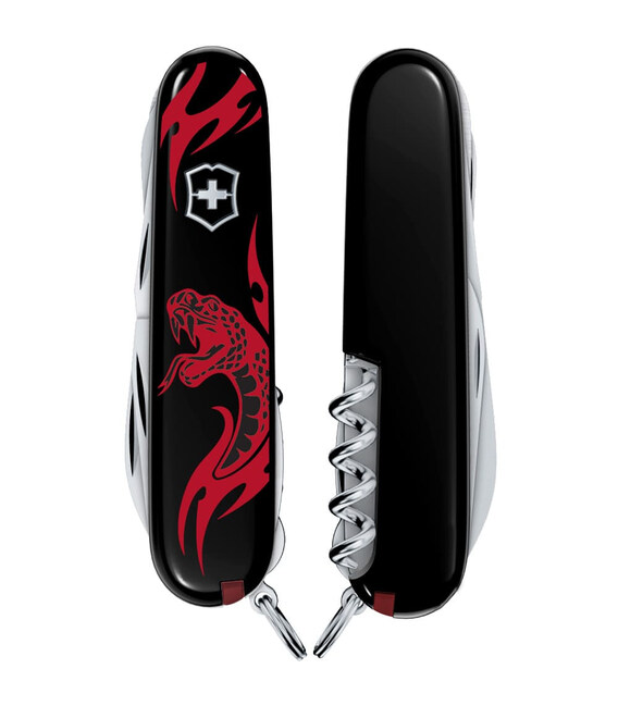 Ексклюзивний складаний ніж Victorinox HUNTSMAN ZODIAC 91мм/15 функцій / чорні накладки / штопор / ножиці / пилка / гачок / Вражаюча змія (Швейцарія) Гарантія: довічна