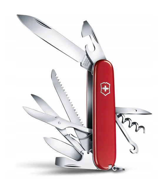 Victorinox HUNTSMAN - швейцарський кишеньковий ніж 91 мм (середній розмір) з 18 функціями і класичними червоними накладками. Ідеально підходить для пиляння дерева або різання канатів під час сходжень, туристичних походів і кемпінгів. Завдяки двом гострим клинкам, пилці, ножицям і відкривачкам впорається з найрізноманітнішими польовими завданнями.Колекція: Huntsman Номер моделі 1.3715 Червоні глянцеві накладки з пластика (целідор) Всі інструменти і внутрішня частина конструкції з високоякісної неіржавної сталі Довжина - 91 мм Товщина - 21 мм 18 функцій. Постачається в оригінальній коробочці з сертифікатом-вкладишем. Бренд: Victorinox (Вікторінокс) Країна виробництва: Швейцарія Висока якість матеріалів і збірки робить кишеньковий ніж Вікторінокс довговічним, точним і неймовірно продуктивним. Різальні крайки довго залишаються максимально гострими. Фірмова неіржавна сталь відрізняється високими показниками стійкості до корозії і деформації.1. великий клинок2. маленький клинок3. пилка по дереву4. ножиці5. відкривачка6. - викрутка плоска 6 мм7. - пристосування для зняття ізоляції з дроту8. консервний ніж9. - викрутка плоска 3 мм10. штопор11. - маленька викрутка (в штопор)12. шило/дирокол13. універсальний гачок14. пінцет15. зубочистка16. кулькова ручка17. шпилька18. кільце для кріплення На ніж Victorinox Huntsman 1.3715, як і на будь-який складаний ніж Вікторінокс, поширюється довічна гарантія на якість матеріалів і заводське виробництво. Швидка доставка - 100% Оригінальні ножі Victorinox в інтернет-магазині chemodanoff.com.ua - широка географія доставки по всій Україні.