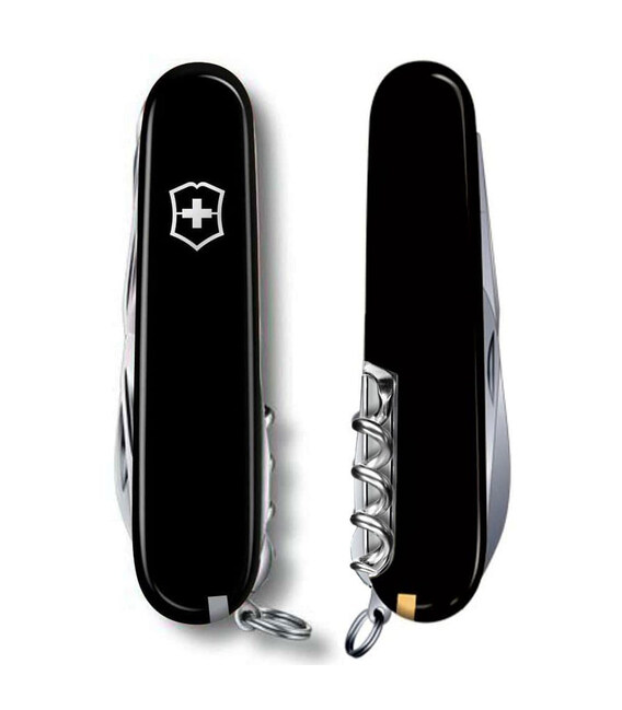 Швейцарський офіцерський ніж MOUNTAINEER 91мм / 4 шари / 18 функцій / чорні накладки / багатоцільовий гачок / штопор / ножиці / пилка по металу 1.3743.3 (Швейцарія) Гарантія: довічна