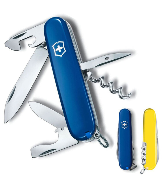 Victorinox SPARTAN UKRAINE (синьо-жовтий) – швейцарський кишеньковий ніж 91 мм на 12 функцій. Легендарна модель Victorinox Spartan у кольорах державного прапора України.Містить два дуже гострі леза різної довжини. Відкривачки доповнені двома плоскими викрутками на кінці. Штопор і шило зі зворотного боку. У накладках ви знайдете не менш корисний набір пристосувань, а сталеве кільце дозволить прикріпити ніж до ланцюжка або темляка. Всі інструменти гарантують бездоганну роботу та не люфлять.Інформація про ніж Victorinox SPARTAN UKRAINE [1.3603.2.8]✔ Ексклюзивний дизайн із патріотичної колекції Spartan Ukraine.✔ Ніж швейцарського виробництва з першокласної неіржавної сталі.✔ Синьо-жовті накладки на руків’я з глянцевого пластика з логотипом бренду.✔ 12 функцій.✔ Кишеньковий ніж Victorinox у складеному вигляді (довжина х ширина х товщина), мм: 91 х 26 х 14✔ На ніж поширюється довічна гарантія якості.✔ Картонна коробочка з оригінальним сертифікатом.✔ Виготовлено у Швейцарії.1. велике лезо з гладкою крайкою2. маленьке лезо3. відкривачка4. – плоска викрутка 6 мм5. – паз для зачистки ізоляції з дроту6. відкривачка для консервів7. – плоска викрутка 3 мм8. штопор9. шило з вушком для шиття (дірокол/кернер)10. синій пінцет у передній накладці11. зубочистка у тильній накладці12. кільце для кріплення Зверніть увагу, що всі ножі Victorinox 91 мм із пластиковими накладками мають спеціальний отвір під шпильку в накладці біля штопора (у комплектацію до цієї моделі шпилька не входить та продається окремо).
