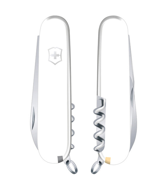 Victorinox WAITER (білий) – середній кишеньковий ніж Victorinox 84 мм на 9 функцій. Тонкий і легкий, нехай вас не вводять в оману компактні розміри та оптимізований набір інструментів, адже ніж по-справжньому багатозадачний. Як випливає з назви, кишенькова модель Waiter (Офіціант) розроблена для шанувальників вина. Ніж оснащено штопором, який завжди готовий відкрити пляшечку вина на пікніку чи вдома. А лезо з класичним гладким заточенням допоможе швидко нарізати сир та фрукти до столу. Всі інструменти гарантують легендарну якість Victorinox, довговічну роботу та не люфлять.Інформація про ніж Victorinox WAITER [0.3303.7]✔ Ніж швейцарського виробництва з першокласної неіржавної сталі.✔ Білі накладки-руків’я з ударостійкого пластика з логотипом бренду.✔ 9 функцій.✔ Середній розмір ножа Victorinox (довжина х ширина х товщина), мм: 84 х 26 х 12✔ На ніж поширюється довічна гарантія якості.✔ Картонна коробочка з оригінальним сертифікатом.✔ Виготовлено у Швейцарії.1. гостре сталеве лезо2. штопор3. відкривачка4. – консервний ніж5. – плоска викрутка 5 мм6. – паз для зачистки дротів7. пінцет у передній накладці8. зубочистка у тильній накладці9. кільце для кріплення Зверніть увагу, що всі ножі Victorinox 84 мм із пластиковими накладками мають спеціальний отвір під шпильку в накладці біля штопора (у комплектацію до цієї моделі шпилька не входить та продається окремо).