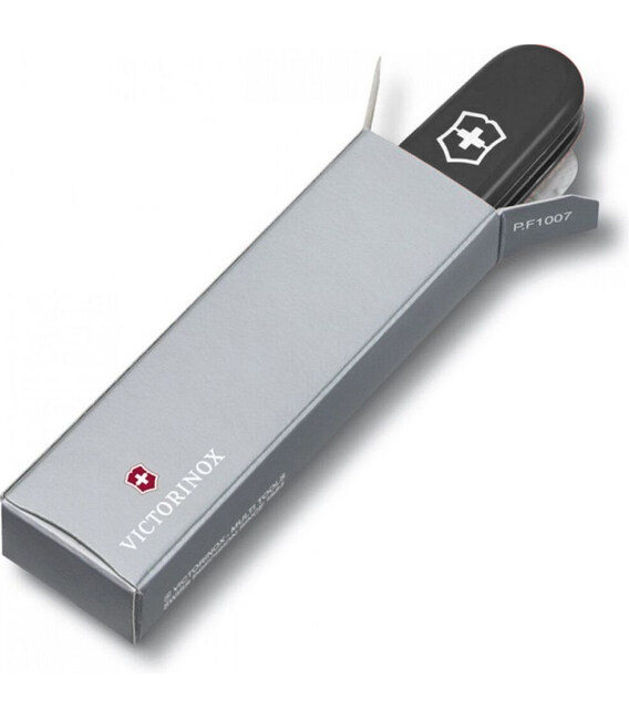 Victorinox SPORTSMAN (чорний) – оригінальний швейцарський складаний ніж 84 мм на 13 функцій. Цей невтомний Спортсмен містить ідеальний набір інструментів для чоловіків і жінок. Компактний та функціональний дизайн, щоб зручно носити з собою щодня. Всі інструменти гарантують бездоганну, довговічну роботу, не люфлять. Ножовий замок Slip-joint – це перевірена часом конструкція, яка фіксує лезо в положенні до руків’я та надійно захищає від закидання під час роботи.Інформація про ніж Victorinox SPORTSMAN [0.3803.3]✔ Виготовлений із висококласної неіржавної сталі.✔ Чорні накладки-руків’я з міцного пластика з логотипом бренду.✔ 13 функцій.✔ Легка вага: 52 г✔ Середній розмір ножа Victorinox (довжина х ширина х товщина), мм: 84 х 26 х 15✔ На ніж поширюється довічна гарантія якості.✔ Картонна коробочка з оригінальним сертифікатом.✔ Виготовлено у Швейцарії.1. велике сталеве лезо2. пилочка для нігтів3. – очищувач для нігтів4. відкривачка для пляшок та закаток5. - викрутка плоска 6 мм6. - паз для усунення ізоляції з проводки7. відкривачка для консервів8. - викрутка плоска 3 мм9. штопор10. шило (дірокол)11. пінцет у передній накладці12. зубочистка у задній накладці13. кільце для кріплення