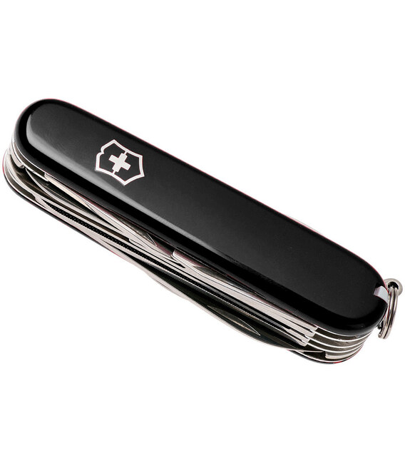 Victorinox RANGER (чорний) – складаний кишеньковий ніж 91 мм на 21 функцію. Представляє колекцію середніх складаних ножів Victorinox. Розрахований на те, щоб упоратися з усіма викликами дикої природи та домашнього побуту. Компактний спосіб завжди мати під рукою повноцінну майстерню. Всі інструменти гарантують бездоганну, довговічну роботу, не люфлять. Ножовий замок Slip-joint – це перевірена часом конструкція, яка фіксує лезо в положенні до руків’я та надійно захищає від закидання під час роботи.Інформація про ніж Victorinox RANGER [1.3763.3]✔ Виготовлений із висококласної неіржавної сталі.✔ Чорні накладки-руків’я з міцного пластика з логотипом бренду.✔ 21 функція.✔ Комфортна вага: 118 г✔ Середній розмір ножа Victorinox (довжина х ширина х товщина), мм: 91 х 26 х 23✔ На ніж поширюється довічна гарантія якості.✔ Картонна коробочка з оригінальним сертифікатом.✔ Виготовлено у Швейцарії.1. велике сталеве лезо2 лезо меншого розміру3. пилка для розпилювання дерева4. ножиці з пружинним механізмом5. пилка по металу6. - напилок по металу7. - нігтьова пилочка8. - очищувач для нігтів9. викрутка плоска 2,5 мм10. долото 4 мм11. відкривачка12. - викрутка плоска 6 мм13. - паз для усунення ізоляції з проводки14. відкривачка для консервів15. - викрутка плоска 3 мм16. шило (дірокол)17. багатозадачний гачок18. штопор19. пінцет у передній накладці20. зубочистка у задній накладці21. кільце для кріплення