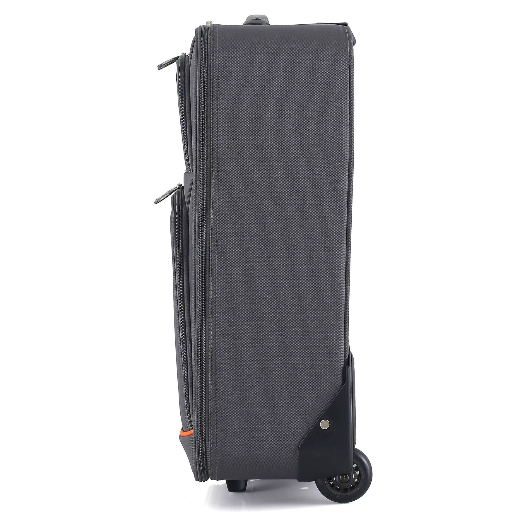 Дві помаранчеві смуги на фасаді роблять вигляд валізи більш виразним, а головне дозволять швидше знайти саме вашу валізу у багажних відділеннях серед багатьох інших схожих валіз. Дві глибокі кишені на фасаді здатні вмістити велику кількість речей першої необхідності. Для розміщення дрібних речей всередині валізи передбачена окрема кишеня на блискавці. Телескопічна ручка фіксується в двох положеннях.