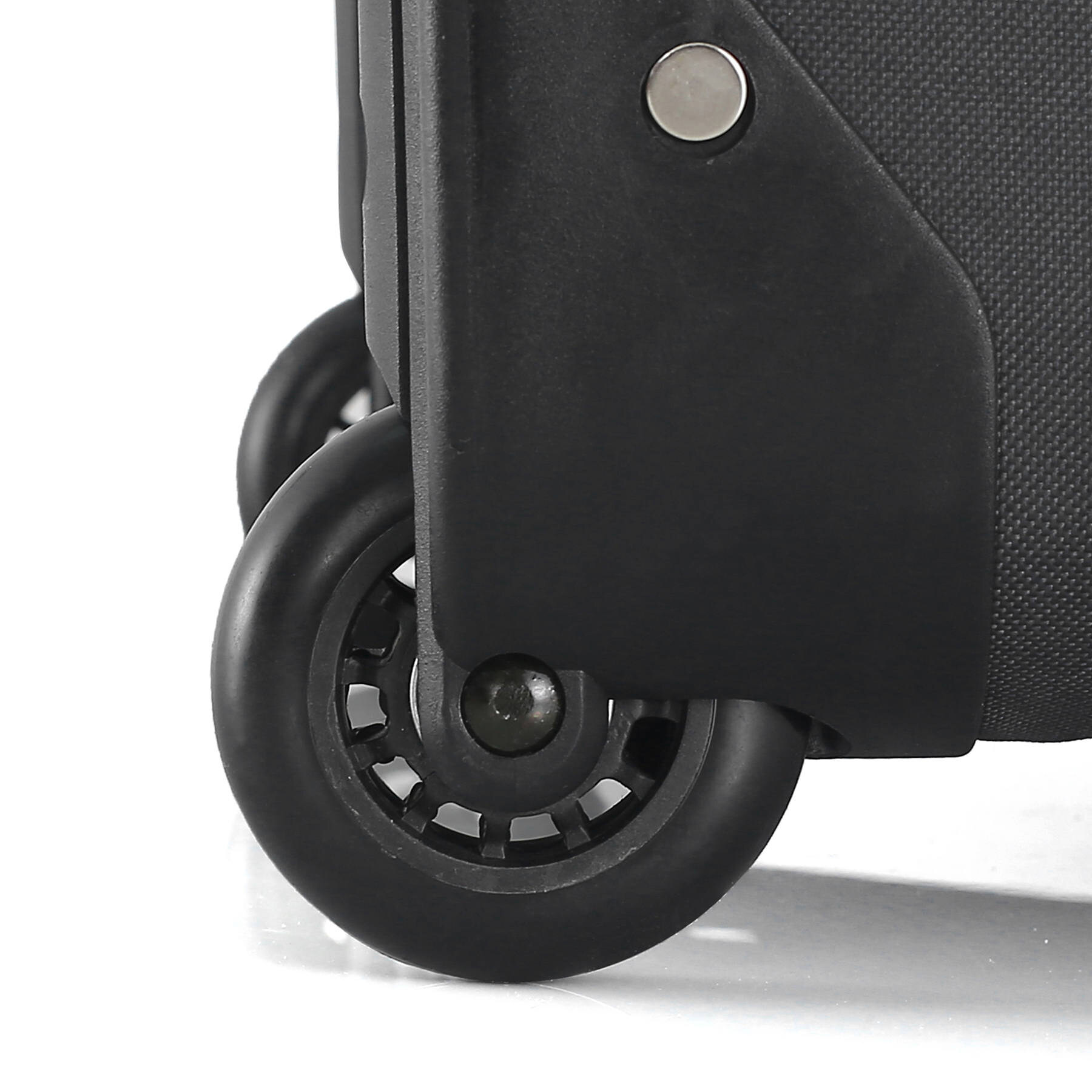 | Дополнительные характеристики | Скрытые колеса; Выдвижная телескопическая, стальная ручка фиксируется в трех положениях; Ручка в верхней части части чемодана для транспортировки в вертикальном положении; Два внешних и внутренний карман; Эластичные компрессионные ремни на застежке предназначены для фиксации вещей внутри чемодана; ID-окошко для размещения информации о владельце; |