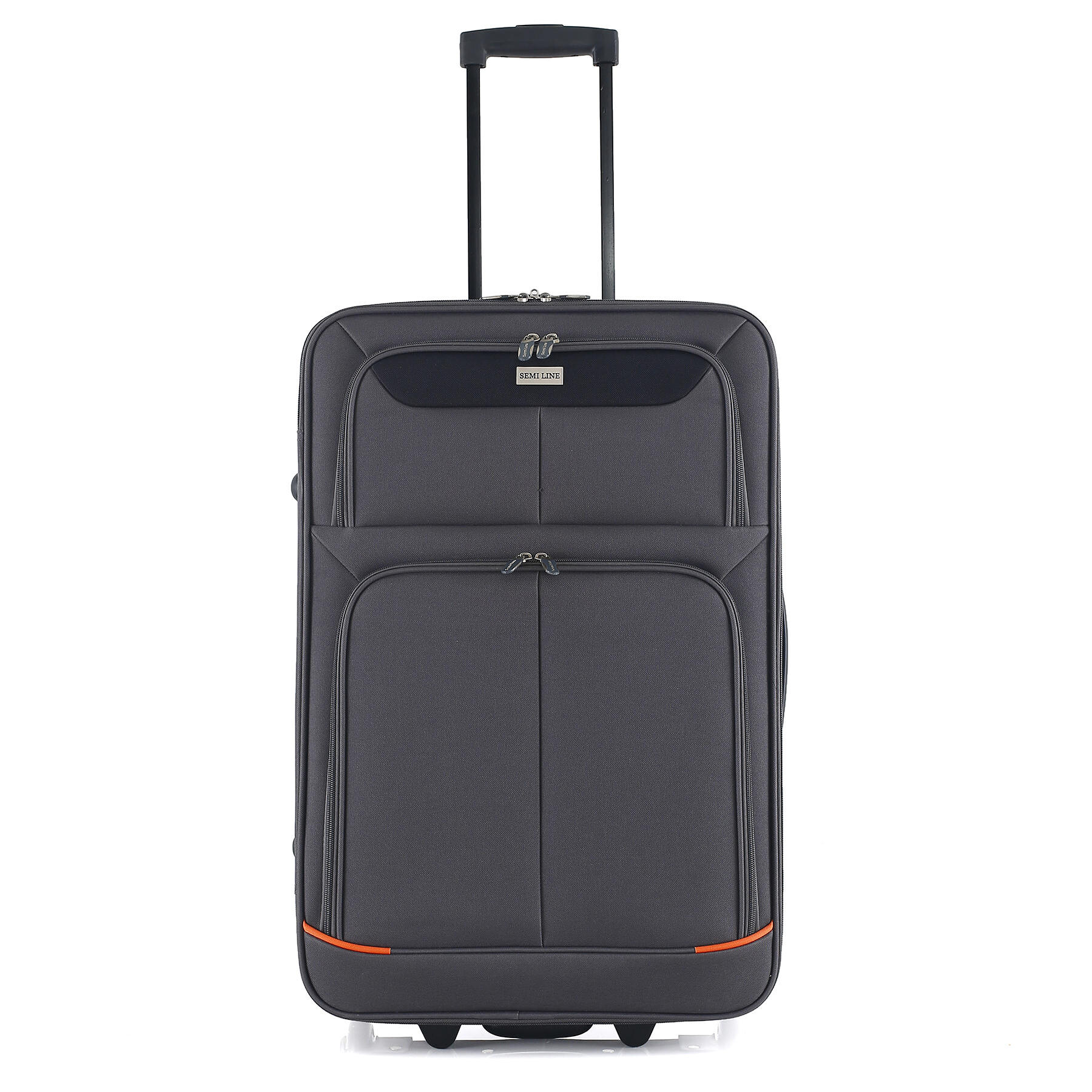 Валізи Semi Line T5754 витримують значні навантаження при коченні завдяки тому, що колеса знаходяться в спеціальних нішах та захищені бічними пластиковими накладками. Зверху, знизу та збоків, валіза має суцільну пластикову вставку, що сприяє більшій жорсткості і дозволяє тримати форму. Тканина має внутрішнє водозахисне покриття, отже речі будуть лишатись сухими навіть під дощем.