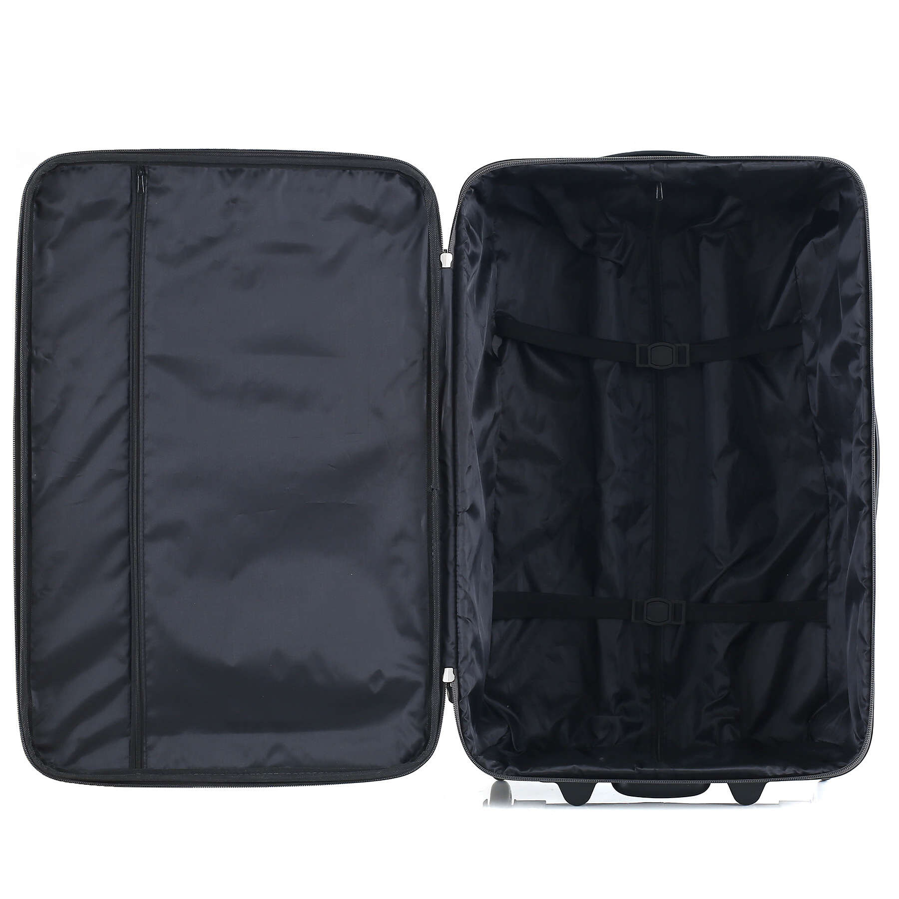 | Дополнительные характеристики | Скрытые колеса; Выдвижная телескопическая, стальная ручка фиксируется в двух положениях; Ручка в верхней части и боковой части чемодана для транспортировки в вертикальном и горизонтальном положении; Два внешних и внутренний карман; Эластичные компрессионные ремни на застежке предназначены для фиксации вещей внутри чемодана; ID-окошко для размещения инфо |