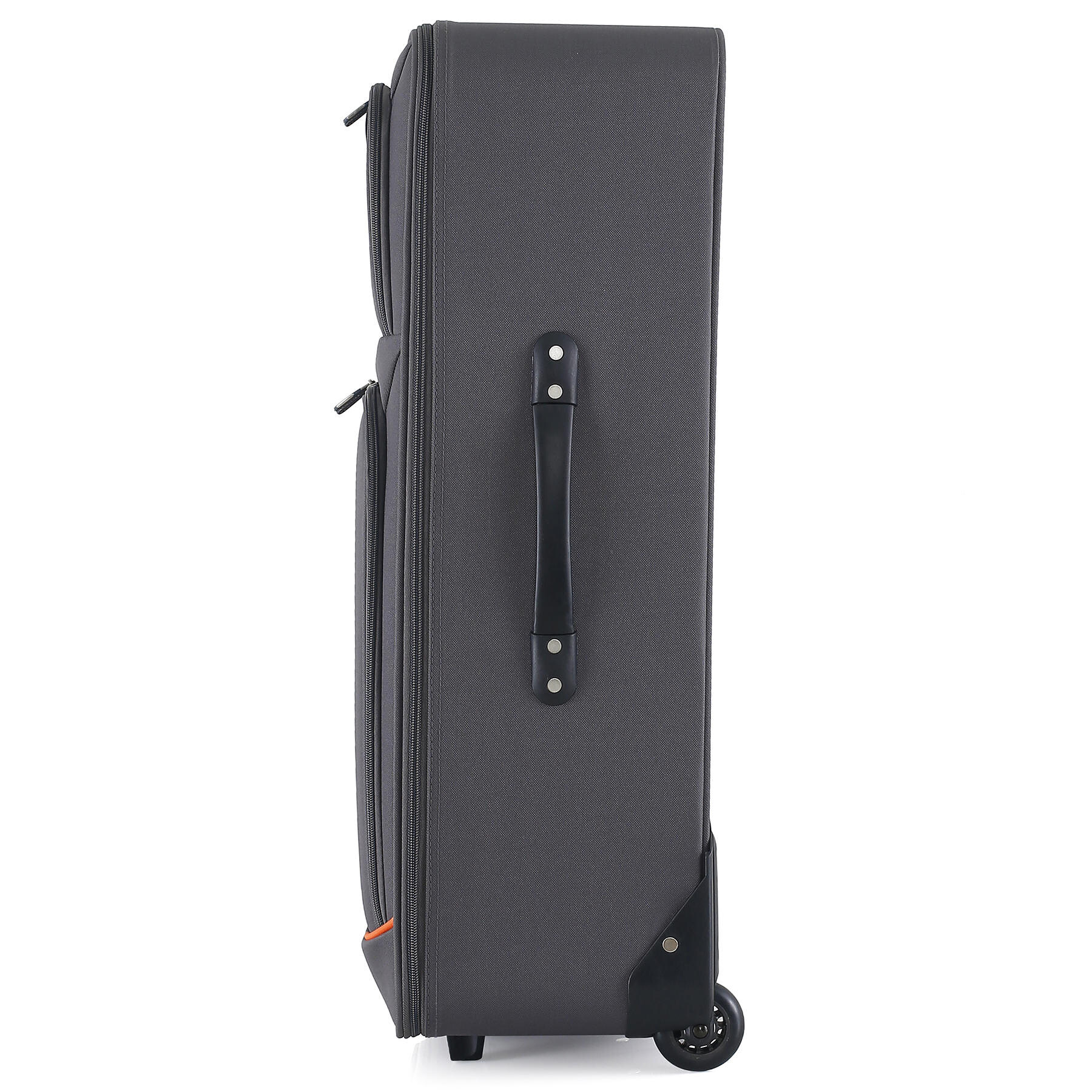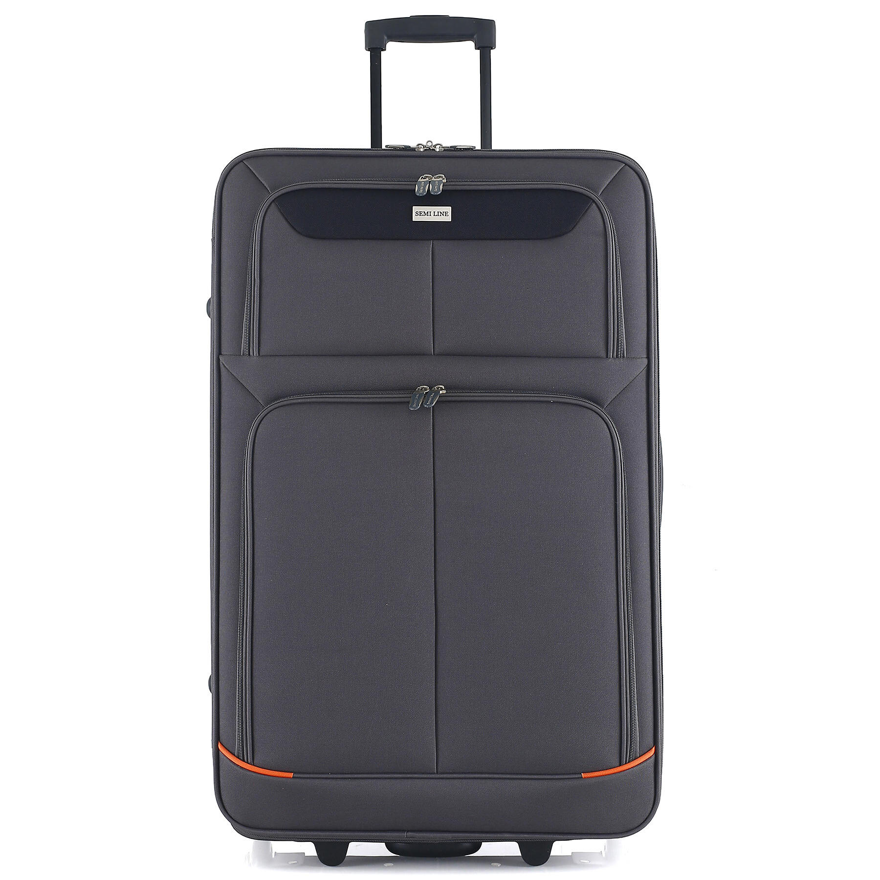 Дві помаранчеві смуги на фасаді роблять вигляд валізи більш виразним, а головне дозволять швидше знайти саме вашу валізу у багажних відділеннях серед багатьох інших схожих валіз. Дві глибокі кишені на фасаді здатні вмістити велику кількість речей першої необхідності. Для розміщення дрібних речей всередині валізи передбачена окрема кишеня на блискавці. Телескопічна ручка фіксується в двох положеннях.