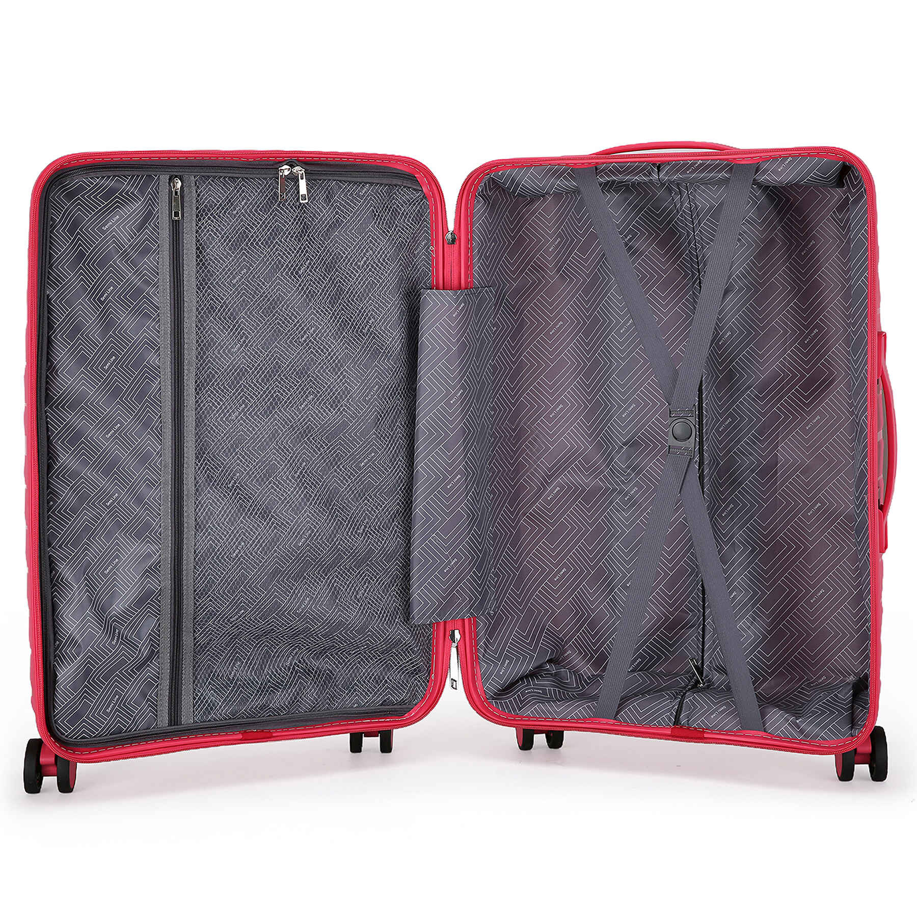 | Дополнительные характеристики | Кодовый замок; Прочный полипропиленовый корпус; Выдвижная телескопическая, алюминиевая ручка фиксируется в двух положениях; Ручки в верхней и боковой части чемодана для транспортировки в вертикальном и горизонтальном положении; Текстильная перегородка на молнии с карманом на молнии; Эластичные компрессионные ремни на фастексе предназначены для фиксации |