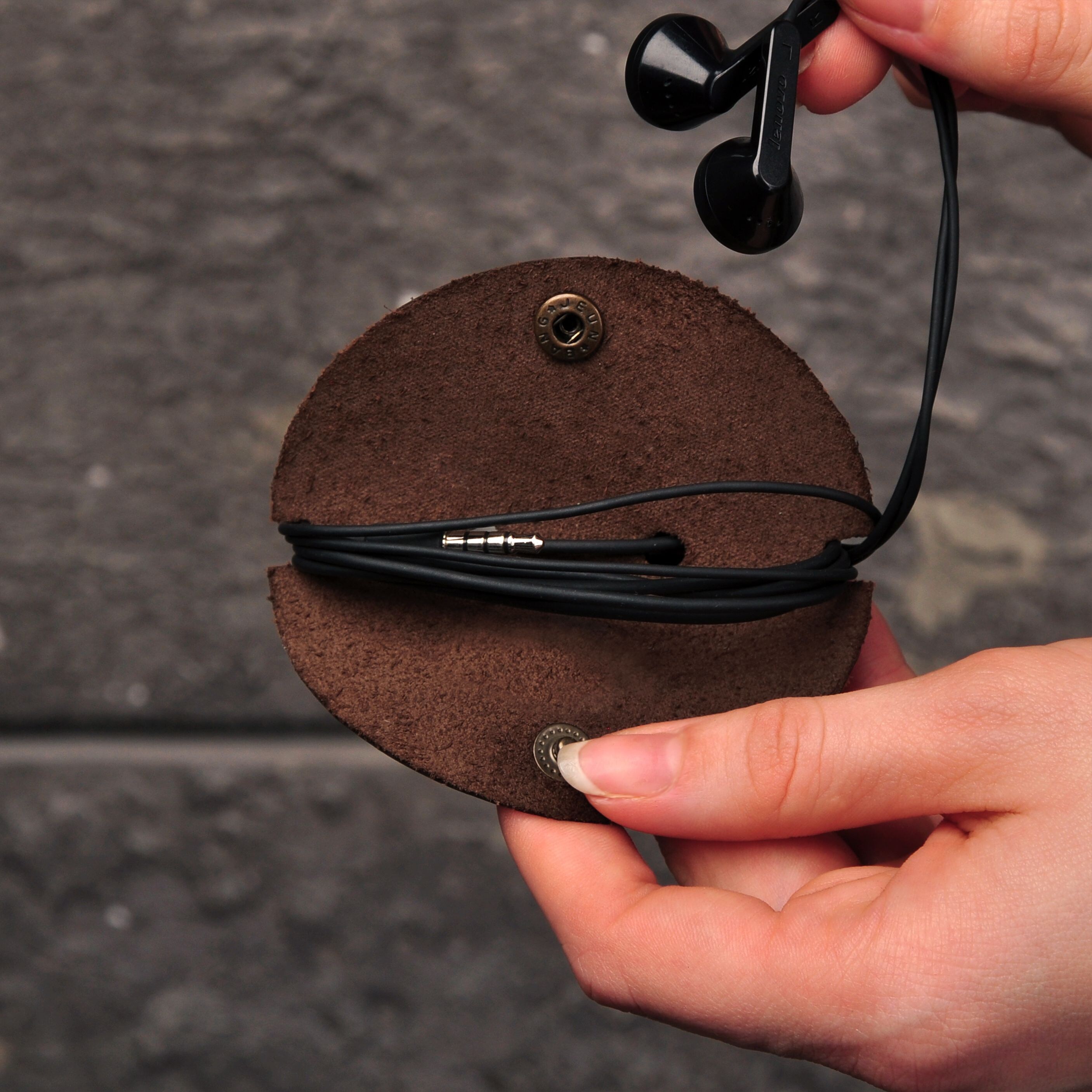 Непомітна і незамінна річ - холдер для навушників та проводів! Виготовлений з натуральної шкіри, надійно застібається на кнопку, що не дозволить навушникам розмотатись. Наші майстри подбали про практичність і зручність використання. Щоб зафіксувати навушники, протягніть провід через отвори в центральній частині холдера, після чого слід обмотати навушники навколо. Ви можете обмотати навушники повністю або залишити необхідну довжину. Холдер для навушників та проводів, допоможе заощадити вам час і нерви :)