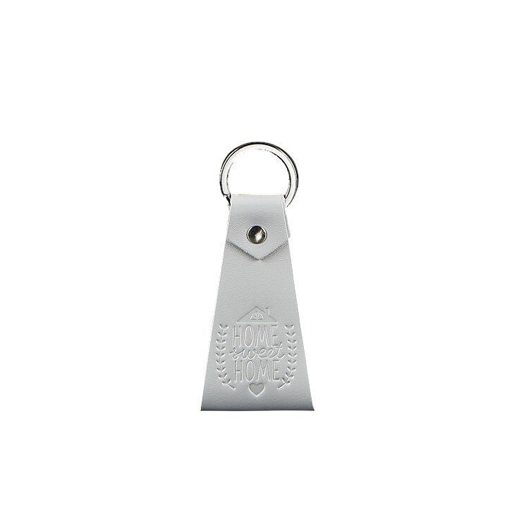 Для виготовлення брелока використовувалася високоякісна натуральна шкіра в сірому кольорі і міцна металева фурнітура.