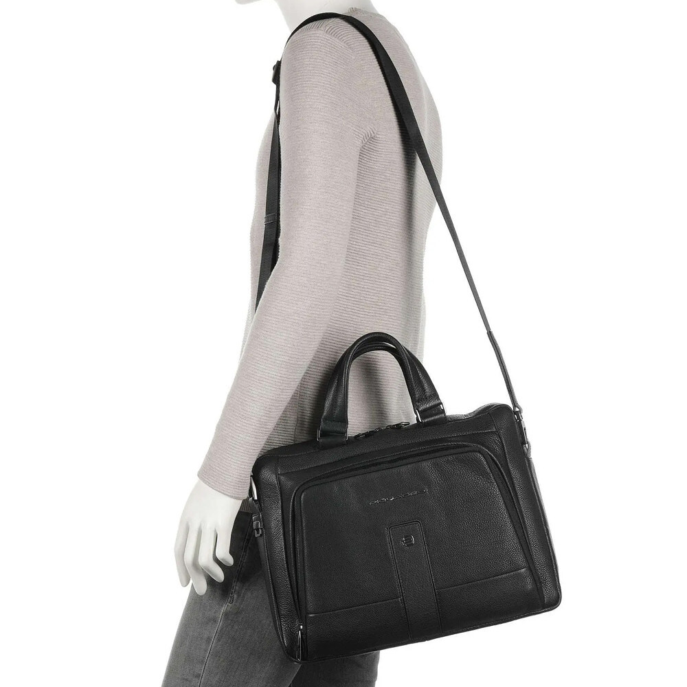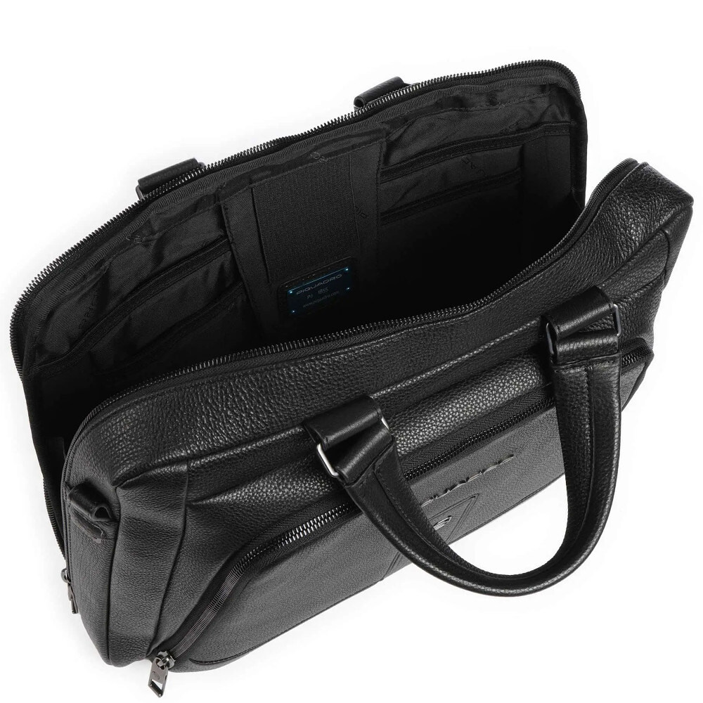 Портфель Piquadro Carl (S129) Black CA4098S129_N Портфель Piquadro Carl (S129) Black CA4098S129/N із натуральної шкіри чорного кольору. Ідеальна модель для робочих буднів. Шикарний дизайн та якісна натуральна шкіра від майстрів Піквадро. Портфель з відділеннями для пристроїв та вміщує формат А 4 Лінійка Carl із сучасними та діловими лініями розроблена дизайнерами Piquadro для продуктивних міських буднів. Колекція виконана із натуральної шкіри змішаного дублення, яка пройшла фарбування в барабані. Шкіра м'яка та приємна на дотик, виглядає елегантно та презентабельно.100% оригінал Piquadro.Країна бренду – Італія.Розмір: 37x28x9 см.Чорний колір/Black/CA4098S129/N.Висока якість італійської шкіргалантереї.Тип закриття – двостороння блискавка.В основному відділенні: протиударне відділення для ноутбука 14", м'яке відділення для iPad з застібкою-липучкою, еластична петля для кріплення, 2 еластичні кишені, еластична кишеня для навушників і 3 еластичні тримачі для ручок.Фронтальне відділення на блискавці з кишенею для трекера.Ремінь для кріплення на ручці валізи.Тильне відділення на блискавці.RFID-захист.Вміщує формат A4.Регульований ремінь на плече.Брендування Piquadro.Портфель Piquadro Carl (S129) Black CA4098S129_N зробить Ваші будні стильними та продуктивними. Доставка по Україні.