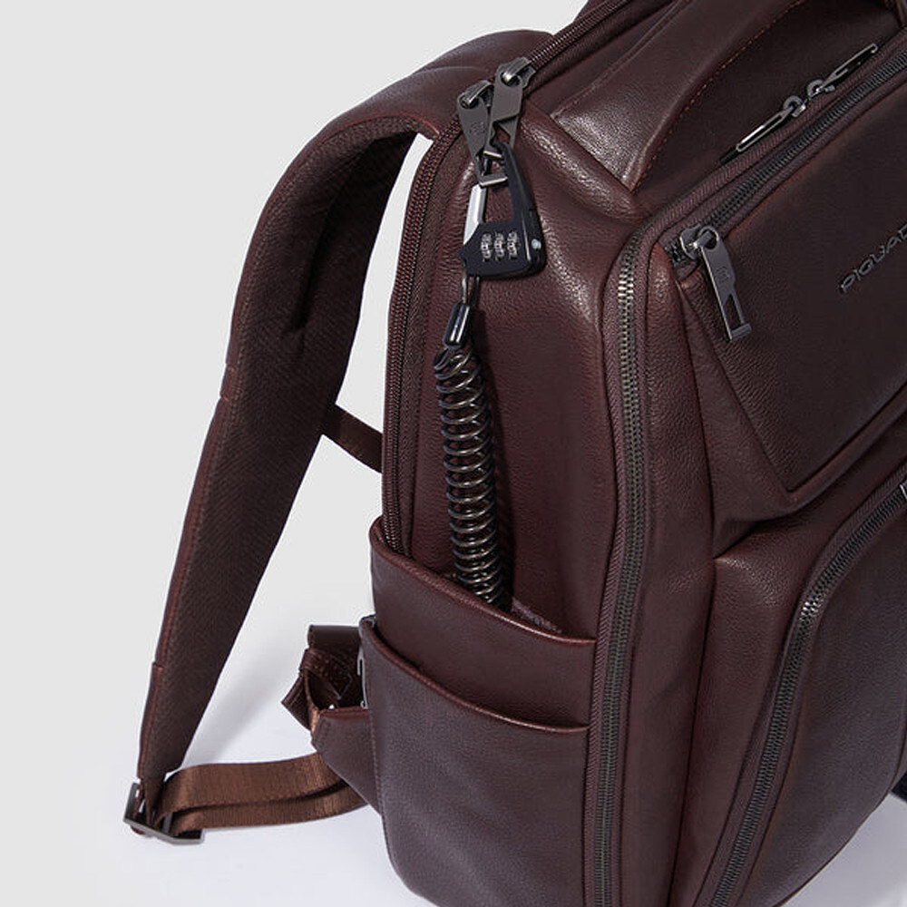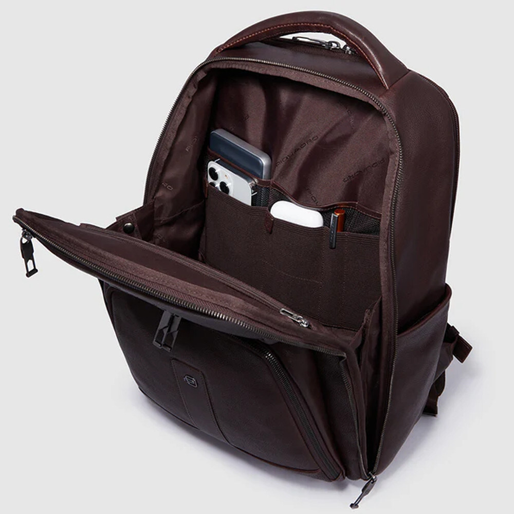 Рюкзак для ноутбука Piquadro Carl (S129) Dark Brown CA6300S129_TM Рюкзак для ноутбука Piquadro Carl (S129) Dark Brown CA6300S129/TM з детально продуманим функціоналом відмінно впишеться в життя ділової та продуктивної людини.Модель із протиударними відділеннями для пристроїв, документів, безліччю кишень, протикрадіжним замком та ременем для кріплення на ручці валізи.Лінійка Carl із сучасними та діловими лініями розроблена дизайнерами Piquadro для продуктивних міських буднів. Колекція виконана із натуральної шкіри змішаного дублення, яка пройшла фарбування в барабані. Шкіра м'яка та приємна на дотик, виглядає елегантно та презентабельно.100% оригінал Piquadro.Коричневий колір/Dark Brown/CA6300S129/TM.Розмір: 31x42,5x18 см. Об'єм – 18 л.Висока якість натуральної шкіри.Рюкзак закривається на двосторонню блискавку.Рюкзак розділений на 2 основні відділення.У передньому основному відділенні: 3 кишені-сітки, 2 еластичні кишені, 1 еластична кишеня для навушників та 1 еластичний тримач для ручок.У задньому основному відділенні: протиударне відділення для ноутбука 15,6" з м'якою підкладкою, відділення для iPad/Pro та 1 еластична петля для кріплення.Спереду: відділення на блискавці із кишенею для трекера.Фронтальне відділення на блискавці двосторонній.Праворуч кишеня.Ліворуч відділення на блискавці для пляшки з водою або парасольки.З лівого боку відділення з кодовим проводом та замком.Ремінь для кріплення на ручці валізи.Відділення на блискавці ззаду.На правому плечовому ремені передбачено 1 варіант кріплення сонцезахисних окулярів.1 кільце кріплення на лівому плечовому ремені.Внизу 1 петля для застібки.Спинка м'яка та дихаюча RFID-захист.Нагрудні ремені, що регулюються по висоті.Вміщує формат A4.Брендування Piquadro.Італійські шкіряні рюкзаки Piquadro у магазині Chemodanoff. Великий вибір. Доставка по Україні.