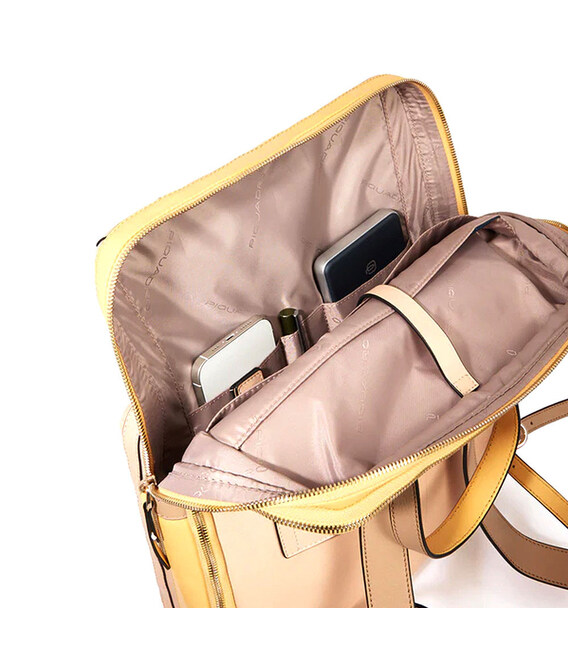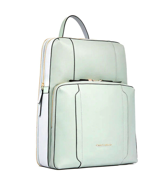 Жіночий шкіряний рюкзак Piquadro CIRCLE для ноутбука 15,6 дюймів з розширенням на блискавці - ненудна ділова класика. Преміальний італійський дизайн із висококласної натуральної шкіри у ніжному поєднанні двох відтінків м'ятно-зеленого кольору. Досить містка модель, яка додатково розширюється, тому ідеально підходить для повсякденного ділового життя і водночас виглядає розкішно.Колекція Circle створена для елегантної та цілеспрямованої жінки, яка шукає практичність та вишуканість. Втілює суть сучасної жіночності в деталях: тонка, але м'яка теляча шкіра, округлі форми, вишукана фурнітура з блискучою світло-золотистою обробкою, а також колірні рішення серії з контрастними вставками та чорними кантами, що надають динамічності та глибині дизайну.Інформація про рюкзак Piquadro CIRCLE - CA6216W92 VEVE✔ Колір та назва дизайну: Green-Green (м'ятний зелений зі світлішими вставками).✔ Зовнішній матеріал: натуральна шкіра.✔ Підкладка: поліестер.✔ Металева фурнітура світло-золотого кольору.✔ RFID захищає ваші конфіденційні дані від зчитування.✔ Можливість збільшити простір за допомогою блискавки.✔ Шкіряні наплічні ремені з пряжками для регулювання довжини.✔ Елегантний дизайн верхньої ручки.✔ Шкіряний ремінець на спинці для фіксації на висувній ручці валізи.✔ Розміри: висота 40 – ширина 32 – товщина 13 см.✔ Вміщується формат А4.✔ У комплекті фірмовий мішечок від пилу.• 1 відділення на блискавці.• М'яка кишеня для ноутбука 15,6”.• Кишеня для iPad®Pro 12,9"• Всередині: 2 організаційні кишені, петлі для ручок та магнітний хлястик для навушників.• Передня накладна кишеня на двосторонній блискавці.PIQUADRO – відомий італійський бренд, який спеціалізується на виготовленні преміальної шкіргалантереї. Багаторічні традиції майстерної роботи з натуральною шкірою, уваги як до функціональних, так і до стилістичних деталей, а також завжди актуальні дизайнерські рішення для роботи, дозвілля та подорожей.