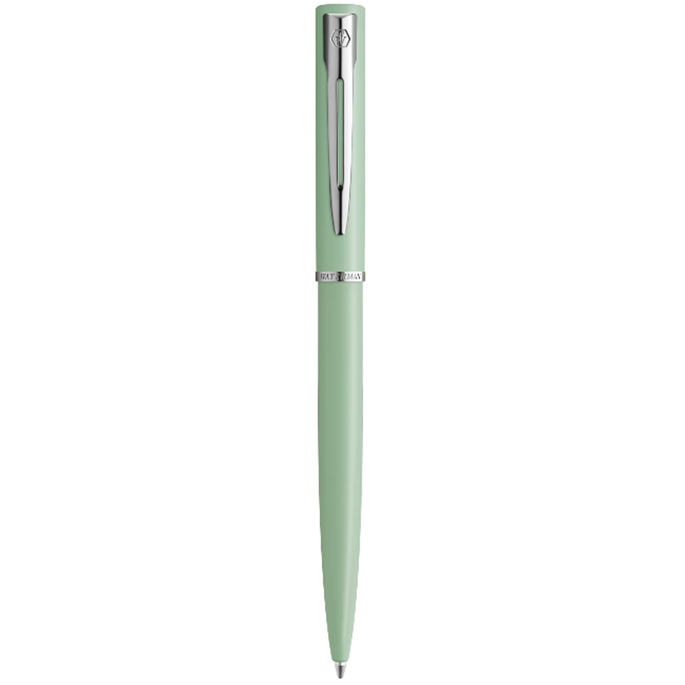 Французька кулькова ручка Waterman ALLURE Pastel Green CT у світло-зеленому матовому дизайні. Елегантна пропозиція для роботи, навчання, творчості, а палітра кольорів робить ручку привабливою для жінок.Від класичних до сміливих, але елегантних пастельних тонів, асортименти лакових покриттів Allure Pastel натхненний сучасними тенденціями і створений, щоб підняти на новий рівень задоволення від повсякденного письма. Класичний дизайн у гладкому металевому корпусі Waterman Allure та низка сучасних елементів оздоблення забезпечують чудовий зовнішній вигляд, який обов'язково справить враження як у навчальному класі, так і у залі засідань.Інформація про кулькову ручку ALLURE Pastel Green CT (2105304)✔ Латунний корпус та ковпачок покриті пастельно-зеленим матовим лаком.✔ Деталізація: хромоване оздоблення, вигравіруваний логотип на затискачі та назва бренду на кільці.✔ Ковпачок має натискний механізм для активації стрижня.✔ У комплектації стартовий стрижень Waterman зі швидковисихаючим чорнилом синього кольору.✔ Темно-синя подарункова коробка.Оригінальні ручки WATERMAN вигідно купити в інтернет-магазині chemodanoff.com.ua.Зручне оформлення замовлення.Швидка доставка по Києву та всій Україні.