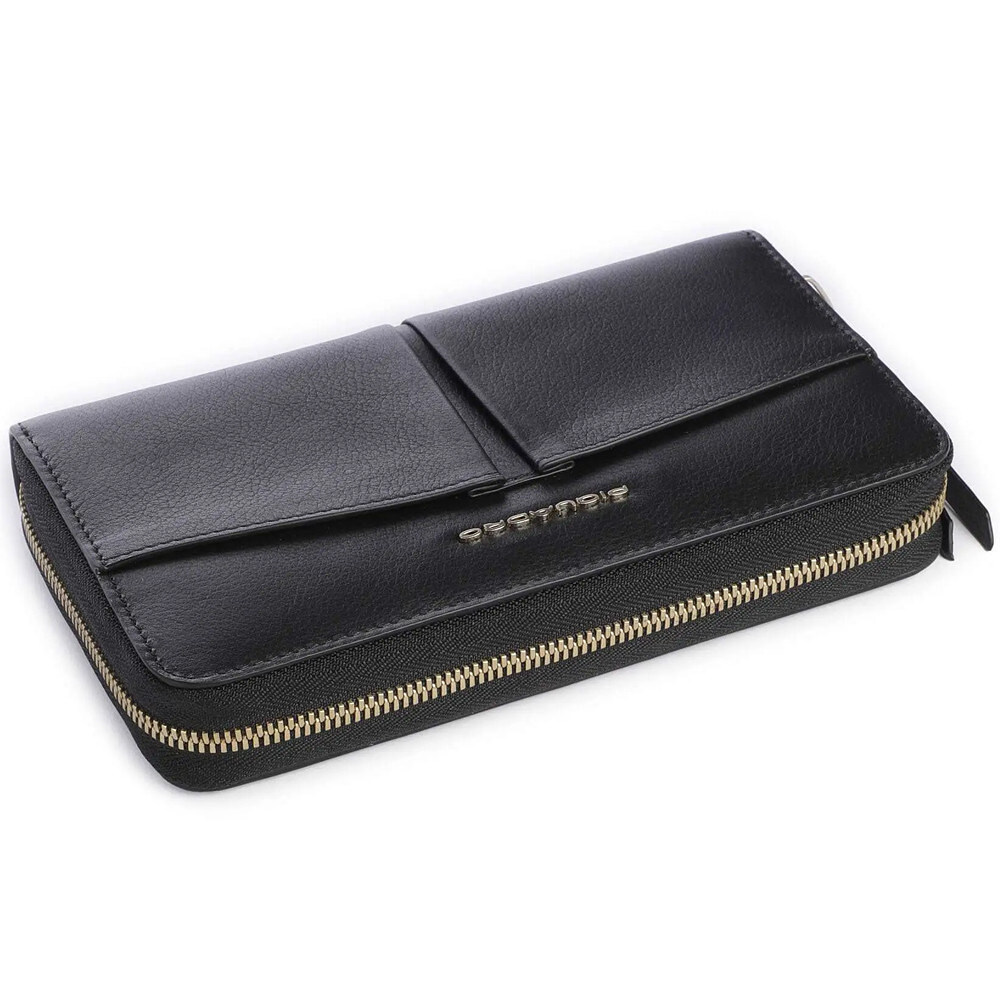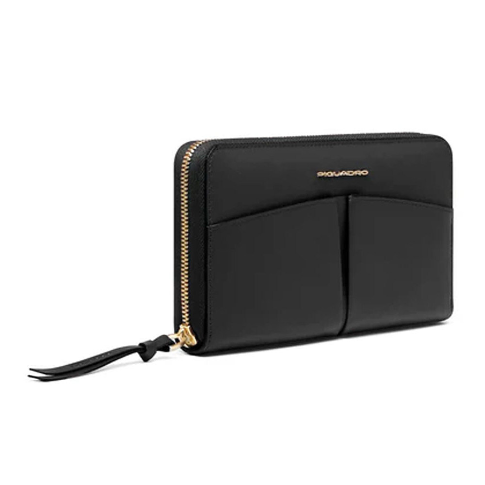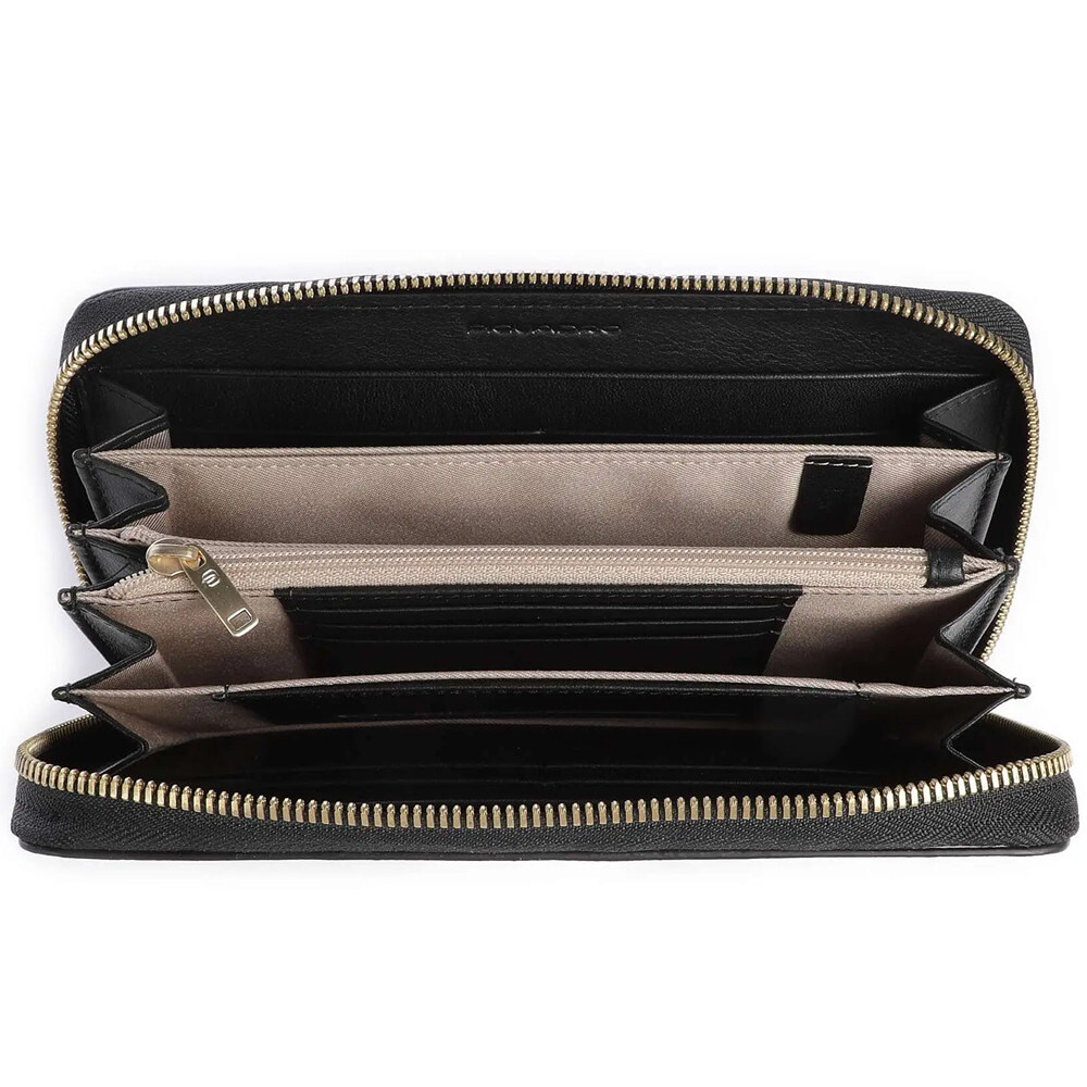 Piquadro ASHLEY PD1515W134R (чорний) - великий шкіряний гаманець на блискавці з захистом RFID. Елегантна жіноча класика для любительок перетворити свій гаманець на справжнє сховище корисних речей. Просторе та безпечне місце для зручного зберігання та пошуку потрібної купюри або картки.Детально про жіноче портмоне Piquadro ASHLEY PD1515W134R_N✔️ Жіноча колекція Ashley (W134).✔️ Дизайн/Колір: Black/чорний однотонний.✔️ Висококласний матеріал: натуральна коров'яча шкіра.✔️ Металева фурнітура золотого кольору.✔️ Великий розмір з горизонтальною орієнтацією.✔️ Закривається на блискавку.✔️ RFID-захист від зчитування даних та коштів з карток з чіпом.✔️ Подарункова коробка Piquadro. • 4 основні відділення. • Відділення на блискавці, наприклад, для монет чи цінних предметів.• 11 слотів для карток.• Додаткові відділення для чеків, візитівок.• 2 лицьові кишені. Колекція сумок, рюкзаків та гаманців для жінок Ashley - це цікаві та сучасні колірні рішення, щоб підкреслити вашу жіночність. Приємна на дотик гладка шкіра з якісним фарбуванням вишукано поєднується з фурнітурою золотого кольору. А фірмове брендування Piquadro на виробі голосно заявляє про винятковий смак своєї власниці. PIQUADRO - відомий італійський бренд, що спеціалізується на виготовленні преміальної шкіргалантереї. Багаторічні традиції майстерності роботи з натуральною шкірою, уваги як до функціональних, так і до стилістичних деталей, а також завжди актуальні дизайнерські рішення для роботи, дозвілля та подорожей.
