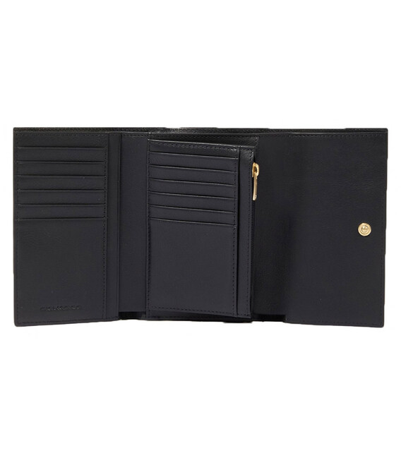 Piquadro ASHLEY PD6471W134R (чорний) - компактний жіночий гаманець з натуральної шкіри із захистом RFID. Елегантна модель у три складання, в якій достатньо місця для впорядкованого зберігання грошей у будь-якому форматі. А завдяки продуманим розмірам, гаманець зручно носити навіть у маленькій сумочці.Докладно про портмоне Piquadro ASHLEY PD6471W134R_N✔️ Жіноча колекція Ashley (W134).✔️ Дизайн/Колір: Black/чорний однотонний.✔️ Висококласний матеріал: натуральна коров'яча шкіра.✔️ Металева фурнітура золотого кольору.✔️ Компактний дизайн у три складання.✔️ Закривається на кнопку.✔️ RFID-захист від зчитування даних та грошових засобів з карток з чіпом.✔️ Подарункова коробка Piquadro. • Відділення для банкнот із роздільником. • Відділення на блискавці, наприклад, для монет чи цінних предметів.• 12 слотів для карток.• 4 бічні відділення для чеків, візитівок.• Задня кишеня на блискавці. Колекція сумок, рюкзаків та гаманців для жінок Ashley - це цікаві та сучасні колірні рішення, щоб підкреслити вашу жіночність. Приємна на дотик гладка шкіра з якісним фарбуванням вишукано поєднується з фурнітурою золотого кольору. А фірмове брендування Piquadro на виробі голосно заявляє про винятковий смак своєї власниці. PIQUADRO - відомий італійський бренд, що спеціалізується на виготовленні преміальної шкіргалантереї. Багаторічні традиції майстерності роботи з натуральною шкірою, уваги як до функціональних, так і до стилістичних деталей, а також завжди актуальні дизайнерські рішення для роботи, дозвілля та подорожей.