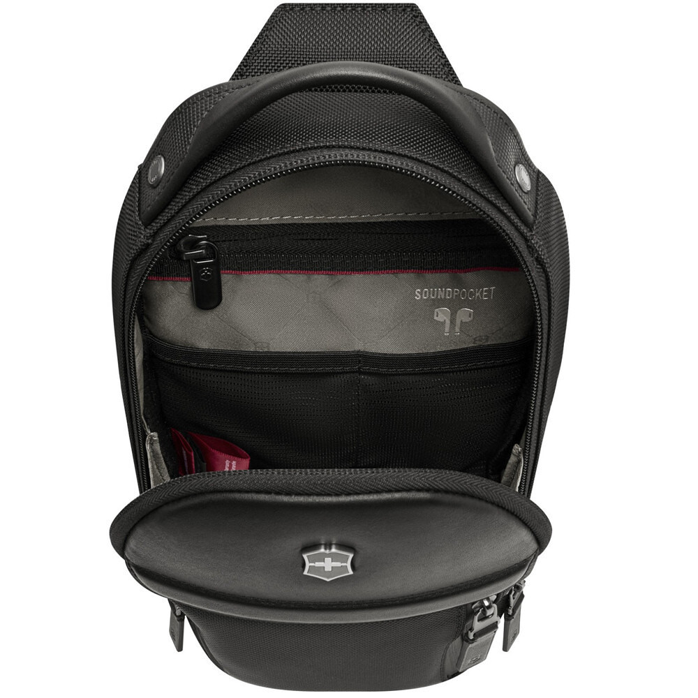 Victorinox ARCHITECTURE URBAN2 Sling - чорна нейлонова сумка-слінг зі шкіряним оздобленням. Елегантно спроектована та виготовлена з високоякісних матеріалів, вона пропонує продуману організацію внутрішнього простору, окрему кишеньку для навушників та регульований наплічний ремінь для максимального комфорту в дорозі. Раціональна для міських потреб місткість та грамотне розташування периферійних кишень розмістить усі необхідні предмети під рукою.Детальні характеристики моделі Victorinox 653350✔ Сучасний дизайн сумки-слінг на одне відділення.✔ Елегантний дизайн з нейлону зі шкіряними елементами та значком-логотипом Victorinox.✔ Застібається на блискавку з двома бігунками.✔ Довжина ременя регулюється.✔ Можна носити через праве та ліве плече, перестебнувши карабін на ремені.✔ Шкіряна верхня ручка.✔ Збоку – накладка швейцарського кишенькового ножа із функціональним пінцетом.• 1 відділення на блискавці.• Всередині – кишеня на блискавці + 2 кишені-сітки, серед яких кишенька для навушників.• Передня кишеня на блискавці.• Задня потайна кишеня на блискавці.