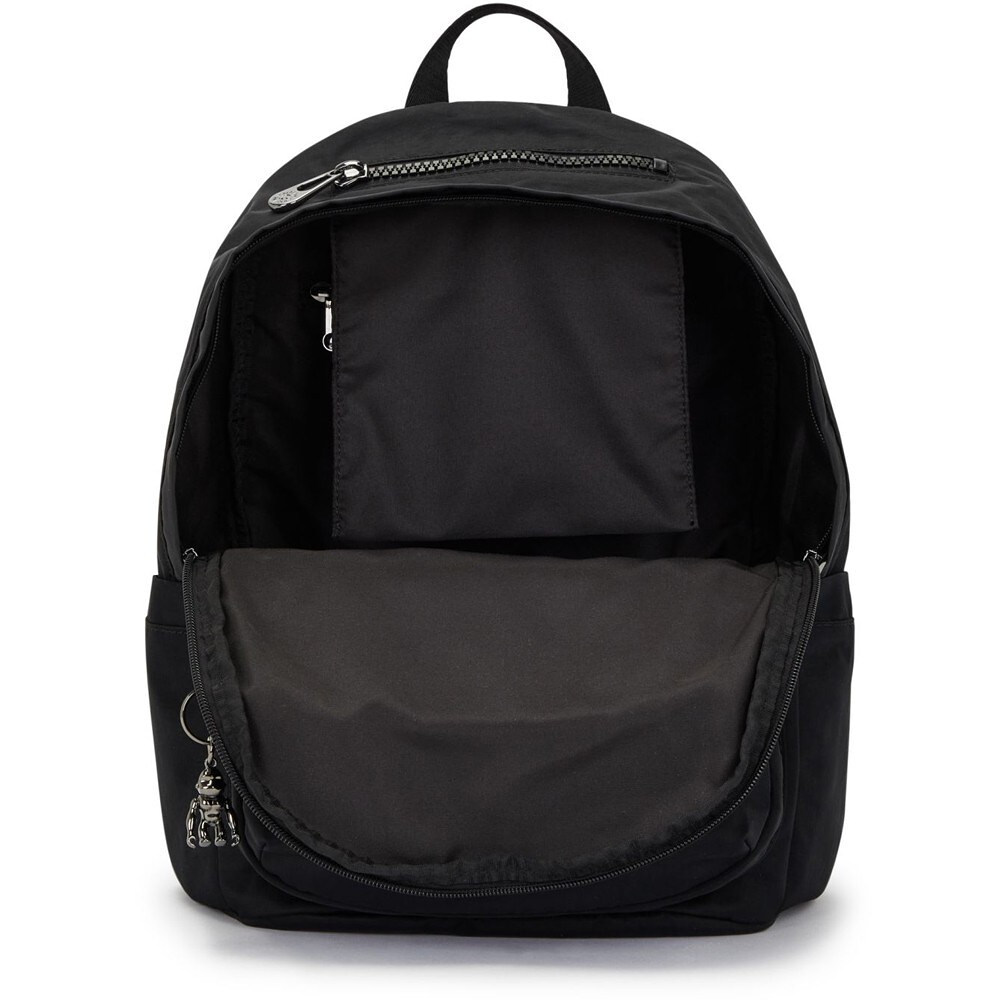 Середній жіночий рюкзак Kipling DELIA у чорному нейлоновому дизайні з колекції BASIC ELEVATED. Акуратний вигляд Delia ідеально підходить для міського життя. Легкий текстильний рюкзак з гарною місткістю та безліччю корисних кишень. Зберігайте свої речі організовано, маючи при цьому зручний доступ до дрібних предметів. Це ідеальний компаньйон для активного, але елегантного способу життя.Інформація про рюкзак Delia від Kipling – арт. KI6371 (TB4)✔ Колір і назва дизайну: Endless Black (чорний однотонний з темною фурнітурою).✔ Зовнішній матеріал: 100% поліамід (естетичний, легкий, міцний текстиль).✔ Підкладка: 100% перероблений поліестер.✔ Застібки: блискавки.✔ Широкі наплічні ремені (довжина регулюється).✔ Верхня ручка-петелька для підвішування або перенесення в руках.✔ Фірмова фішка бренду - брелок-талісман у вигляді мавпочки.✔ Фірмовий круглий логотип на передній кишені.✔ Середній розмір: 37,5 х 30,5 х 21,5 см.• 1 відділення з внутрішньою кишенею на блискавці.• 1 велика лицьова кишеня на блискавці (всередині - 1 відкрита кишеня та петлі для ручок).• 1 маленька верхня кишеня на блискавці для навушників або сонцезахисних окулярів.• 2 бічні кишені.Культові бельгійські рюкзаки Kipling на сайті chemodanoff.com.ua - 100% Оригінал.Швидка доставка по Києву та всій Україні.