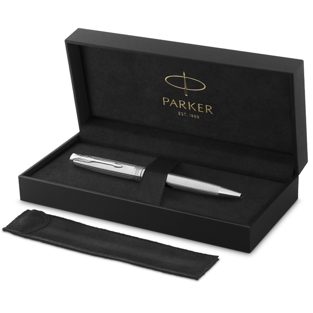 Кулькова ручка SONNET Ciselé Palladium PT зі спеціального випуску Parker. Вишукане гравіювання створює культовий візерунок Ciselé на покритому паладієм ковпачку та корпусі на тлі ретельно відполірованих металевих акцентів. Кульковий тип письма забезпечує плавні та насичені лінії, надихаючи вас на кожне написане слово. Чорна престижна подарункова коробка спеціального випуску супроводжує кожну ручку. Володіти цією золотою спеціальною серією означає віддати шану культовій ручці Sonnet Ciselé, вперше випущеній в 1964 році. І сьогодні цей видатний візерунок залишається впізнаваною рисою бренду Parker.Інформація про ручку Parker SONNET Special Edition Cisele Palladium PT BP✔ Спеціальне видання SONNET Ciselé Special Edition 2025.✔ Ручка виготовлена із ювелірної латуні.✔ Покрита паладієм і декорована приємно відчутним тактильним візерунком Ciselé.✔ Преміальна ручка зі зручним поворотним механізмом ковпачка для активації стрижня.✔ У комплектації:- кулькова ручка Sonnet Ciselé Palladium- оригінальний кульковий стрижень- спеціальний подарунковий футляр чорного кольору- чорний текстильний чохол для ручки