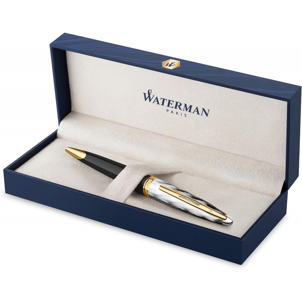 Кулькова ручка Waterman Reflections Of Paris з люксової серії CARENE. Чорний лакований корпус та позолочене оздоблення втілюють романтичний настрій паризького нічного неба, освітленого золотистим сяйвом міських кафе та вуличних ліхтарів. Вишуканий ковпачок з паладієвим покриттям та рельєфним хвилеподібним візерунком ідеально передає плавну течію Сени. Аристократичний профіль колекції CARENE, натхненний силуетом розкішних човнів, оздоблення дорогоцінними металами та присвячене Парижу ексклюзивне оздоблення - ця ручка випромінює розкіш.Інформація про ручку Waterman CARENE Reflections Of Paris 2200946✔ Оздоблення Intense Black Lacquer GT зі спеціального випуску Reflections Of Paris.✔ Чорний глянцевий лак на корпусі.✔ Хвилястий візерунок, висічений на латунному ковпачку.✔ Паладієве покриття на ковпачку.✔ Деталізація золотом.✔ Ковпачок з м'яким поворотним механізмом для активації/деактивації стрижня.✔ У наборі оригінальний кульковий стрижень Waterman із середньою лінією письма та чорним чорнилом.✔ Подарунковий футляр преміум-класу.✔ Ручка виготовлена у Франції.На А ttribute.ua пропонуємо великий вибір оригінальних ручок WATERMAN/Ватерман. Гарантована якість та швидка доставка по всій Україні.