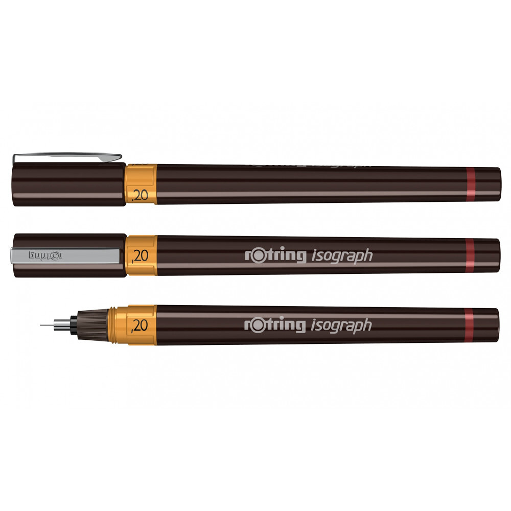 Ізограф Rotring [R1903397] - високоточна ручка з товщиною лінії 0,2 мм (Німеччина, Оригінал).Ізограф - це точна технічна ручка з поповнюваним резервуаром для чорнила, яка пропонує моделі з різними розмірами товщини лінії. Тонкий хромований наконечник дозволяє працювати з дрібними деталями. Завдяки ергономічному корпусу ручка Isograph забезпечує ідеальний баланс ваги, дозволяючи працювати протягом довгих годин без дискомфорту або втоми. Ізограф використовується для створення малюнків, скетчів і різної графічної продукції.Високоточний зносостійкий тонкий наконечник із неіржавної сталі з твердим хромуванням дозволяє працювати з дрібними деталями. А кольорове маркування кожного розміру, доповнене циферним позначенням, дозволяє одночасно зручно працювати з декількома розмірами ізографів.Резервуар для чорнил - це багаторазова ємність, яка ідеально підходить для використання і частої заправки пляшковим чорнилом (чорнило в комплектацію не входить).Ємність для чорнила легко поповнюється. Ручка Isograph від Ротрінг йде в комплекті з багаторазовим резервуаром для чорнила, який ідеально підходить для частого використання. Використовуйте чорнило в пляшках, яке швидко висихає, з високим ступенем непрозорості, щоб без проблем заправляти перо Isograph. Запатентована вставна гільза забезпечує легкий доступ до спіралі чорнила і швидке очищення, тому ви можете зосередитися на тому, що дійсно важливо.Зберігайте технічну ручку Isograph в ідеальному стані за допомогою очисної рідини rOtring для технічних ручок (продається окремо). Запатентована вставна гільза забезпечує швидке і легке очищення чорнильної спіралі. Незалежно від того, чи перебуваєте ви в перервах між використанням або готуєтеся до зміни кольору чорнила.На нашому сайті ви також можете купити оригінальне пігментне чорнило Rotring в декількох кольорах: чорний, синій, червоний, білий, а також змінні письмові частини (передня частина для Isograph) до ізографа з різною товщиною наконечника.