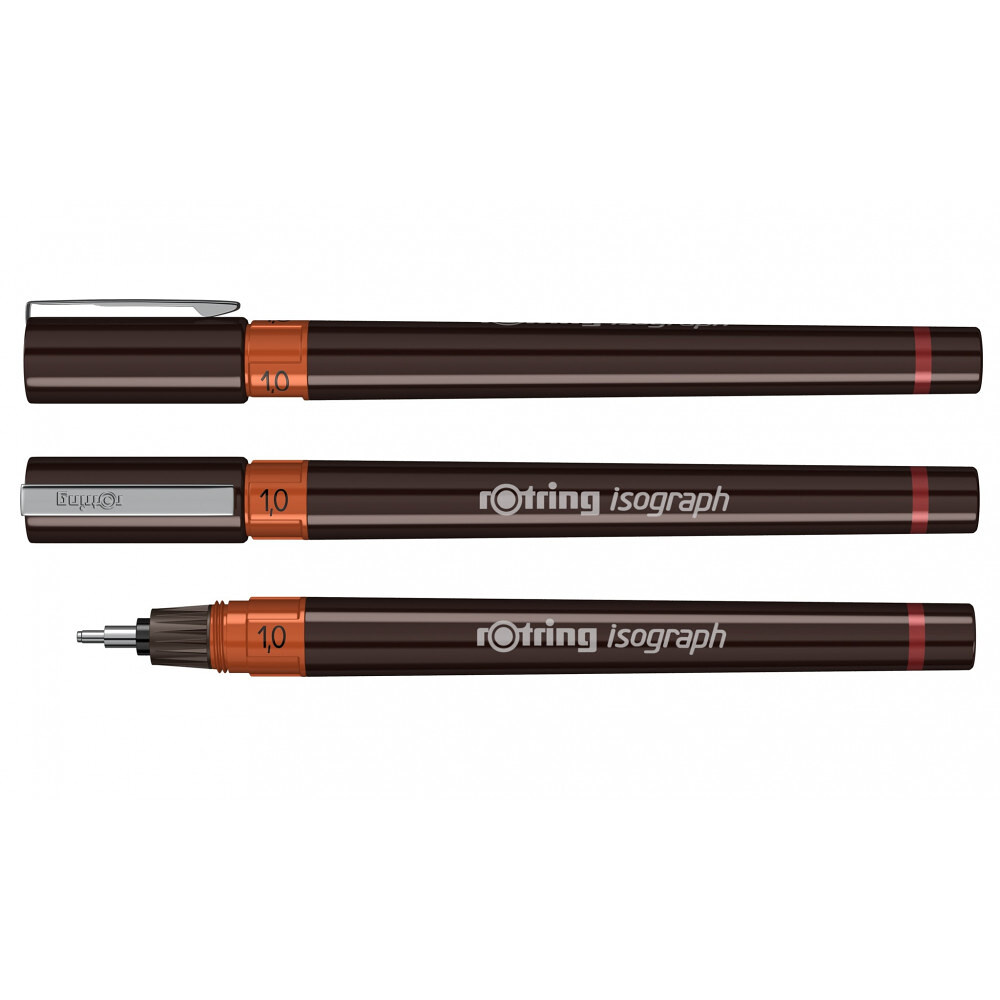 Ізограф Rotring [R1903496] - високоточна ручка з товщиною лінії 1 мм (Німеччина, Оригінал).Ізограф - це точна технічна ручка з поповнюваним резервуаром для чорнила, яка пропонує моделі з різними розмірами товщини лінії. Тонкий хромований наконечник дозволяє працювати з дрібними деталями. Завдяки ергономічному корпусу ручка Isograph забезпечує ідеальний баланс ваги, дозволяючи працювати протягом довгих годин без дискомфорту або втоми. Ізограф використовується для створення малюнків, скетчів і різної графічної продукції.Високоточний зносостійкий тонкий наконечник із неіржавної сталі з твердим хромуванням дозволяє працювати з дрібними деталями. А кольорове маркування кожного розміру, доповнене циферним позначенням, дозволяє одночасно зручно працювати з декількома розмірами ізографів.Резервуар для чорнил - це багаторазова ємність, яка ідеально підходить для використання і частої заправки пляшковим чорнилом (чорнило в комплектацію не входить).Ємність для чорнила легко поповнюється. Ручка Isograph від Ротрінг йде в комплекті з багаторазовим резервуаром для чорнила, який ідеально підходить для частого використання. Використовуйте чорнило в пляшках, яке швидко висихає, з високим ступенем непрозорості, щоб без проблем заправляти перо Isograph. Запатентована вставна гільза забезпечує легкий доступ до спіралі чорнила і швидке очищення, тому ви можете зосередитися на тому, що дійсно важливо.Зберігайте технічну ручку Isograph в ідеальному стані за допомогою очисної рідини rOtring для технічних ручок (продається окремо). Запатентована вставна гільза забезпечує швидке і легке очищення чорнильної спіралі. Незалежно від того, чи перебуваєте ви в перервах між використанням або готуєтеся до зміни кольору чорнила.На нашому сайті ви також можете купити оригінальне пігментне чорнило Rotring в декількох кольорах: чорний, синій, червоний, білий, а також змінні письмові частини (передня частина для Isograph) до ізографа з різною товщиною наконечника.