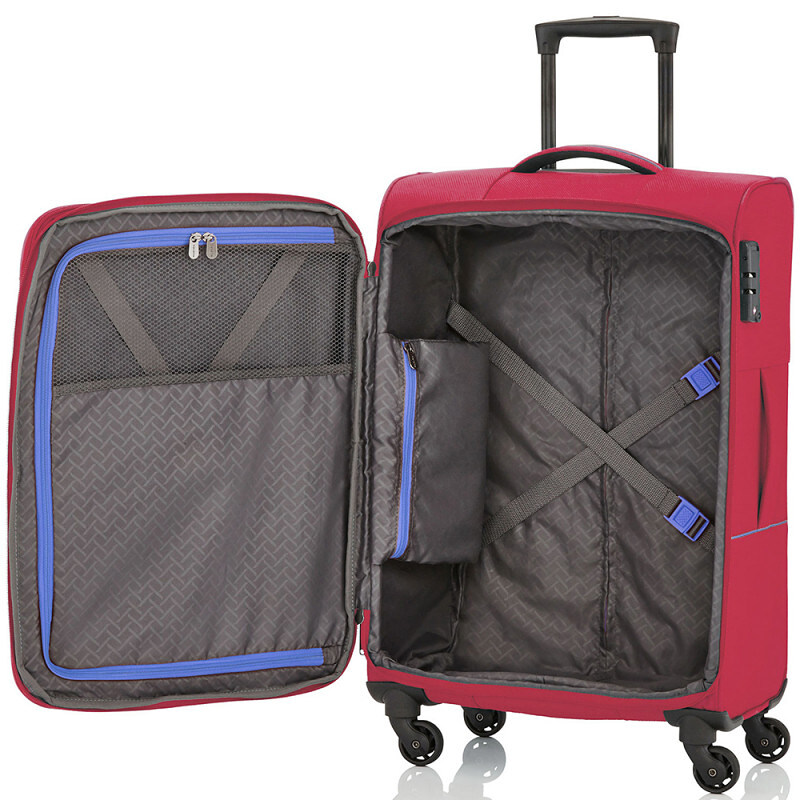 Валіза на 4 колесах Travelite SOLARIS / Red TL088149-10 - місткий багажний атрибут, який має велику кількість корисних функціональних особливостей і дуже привабливий дизайн. 102 л загальної місткості валізи при необхідності збільшуються до 115 л. Великий об’єм і міцність виробу, які не позначаються на його легкості, вага - всього 3,6 кг. Матеріалом для виготовлення валізи Тревелайт послужив щільний поліефір, який, крім легкості своєї ваги, характеризується такими корисними властивостями як водонепроникність, стійкість до розриву, втрати початкової форми і зовнішньої естетичності. Для гарного пересування валізи виріб був обладнаний 4-колісною системою, з одинарними роликовими колесами, які забезпечують швидкість і плавність переміщення, а також відмінну маневреність і стійкість на будь-якій поверхні. Безпека багажу в дорозі забезпечується інноваційним TSA-замком, вшитим прямо в текстильний корпус валізи. Відкрити його може тільки власник, який знає код такого замку. На chemodanoff.com.ua купити Travelite SOLARIS / Red TL088149-10 можна за вигідною ціною! Для здійснення покупки оформляйте замовлення на сайті або зв'яжіться з нами за вказаними номерами телефонів.